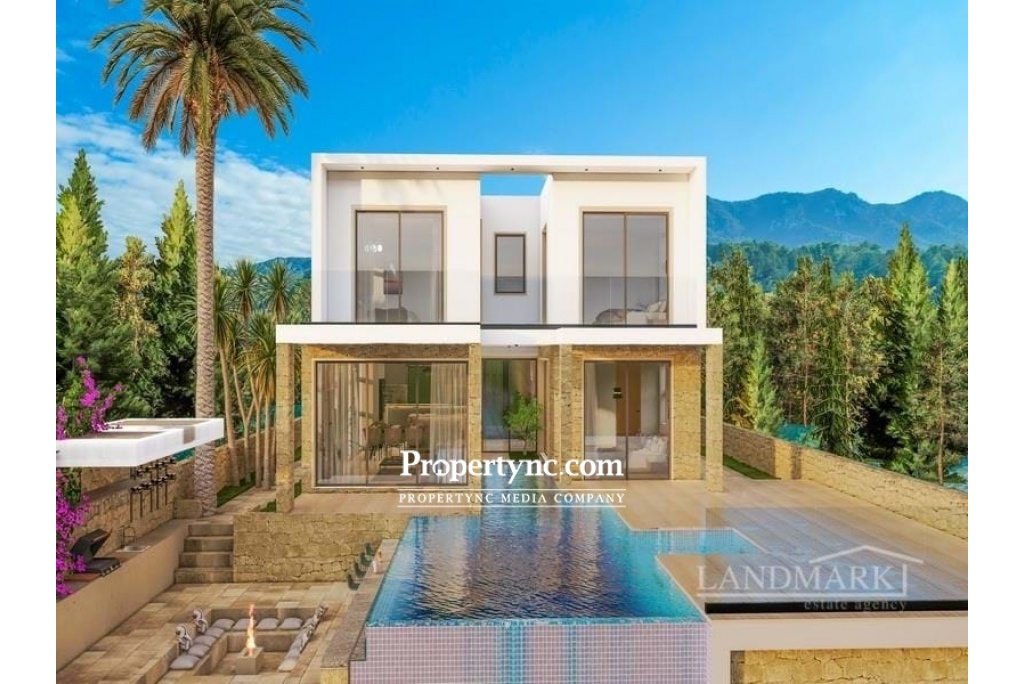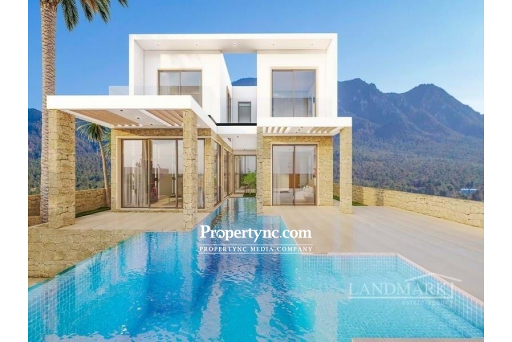 This fabulous new project consists of 12 detached villas located on the stunning Esentepe mountain range, surrounded by serene untouched nature heaven on earth. The location of this exclusive development provides for easy access to many local natural sandy beaches, supermarket, bars, local and international cuisine restaurants, the famous and widely acclaimed Korinium golf course, and the picturesque Cypriot village of Esentepe only 5 minutes away. This location is considered as one of the preferred areas in the whole of the Kyrenia region for both settling permanently or as an investment with properties attracting an above normal resale value and rental yield from tourists holidaying in the region. Each villa will have its own private terrace which provides for the owner to experience the most breath-taking Mediterranean Sea and mountain views, whilst having some beautiful views of the modern contemporary design swimming pool. These stylishly designed 4 bedroom villas (each will have an en-suite), their own private swimming pool, terrace, barbecue area and private parking place. On the ground floor, there will be an open plan kitchen combined with a large spacious lounge with direct access through the patio doors to the pool and terrace. 1st bedroom will be located on the ground floor. On the first floor, the connecting upstairs landing leads to 3 further bedrooms. A great addition to the project are the substantially sized terraces that capture the most stunning panoramic views that you can find in Northern Cyprus. Do not miss the chance to buy your very own piece of paradise. 165m2 internal area 120m2 terrace and balconies From 605m2 to 835m2 plot size Exchange title deed Title deed in the builders name, VAT payable Completion date: beginning of 2024 8m2 x 4m2 swimming pool 3 meters wide pool surround terrace 4 bedrooms 4 en-suits + guest WC Open plan lounge and kitchen Inbuilt kitchen appliances Granite or marble countertops Floor material of your choice Modern double glazed PVC windows and sliding doors Inverter heating and cooling AC system in living room and all 4 bedrooms Water heating system Solar panels External lightings (4 around the garden and 2 around the pool) Tempered glass terrace railings Top soiled garden 2 tons underground water tank Paved car park Extras: 10m2 x 5m2 infinity swimming pool also extending inside the house with direct entry from the house Infinity pool bar area Modern fire pit and lounging area Outside pergola Bar, kitchenette around fire pit and pool 10 external lightings (6 around the garden and 4 around the pool) Closed garage under the house with extra living space and storage place Payment plan: £3,000 reservation fee; 35% down payment; 65% interest-free instalments until delivery date - REF: 1900