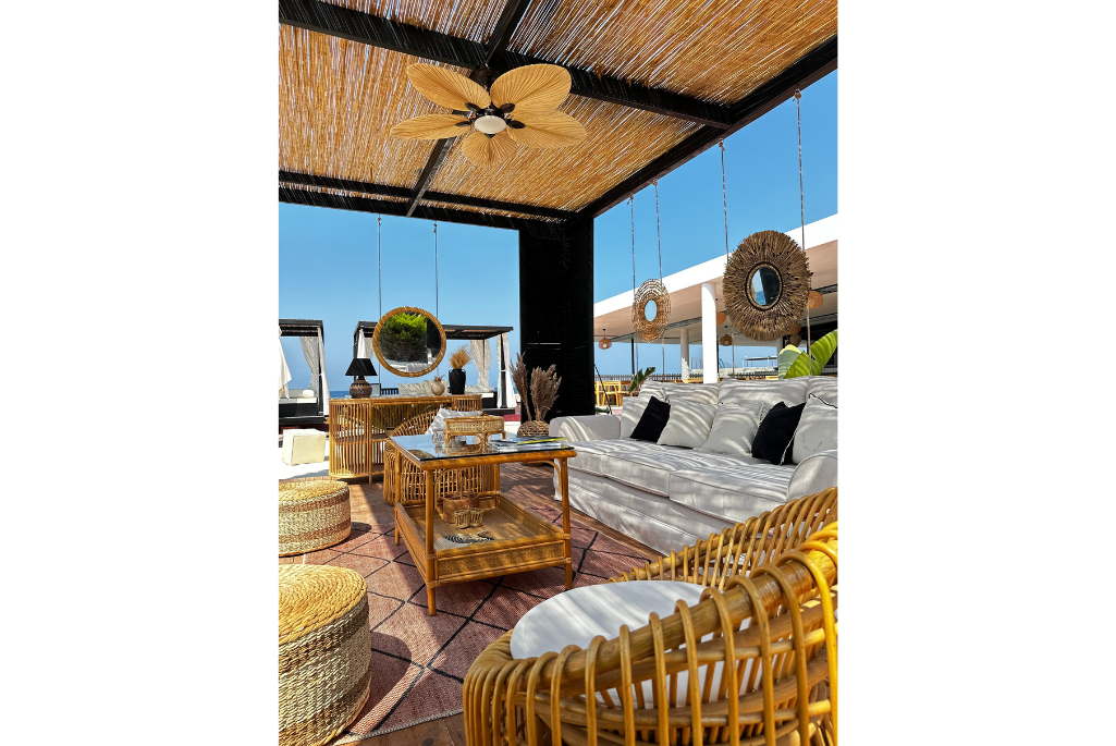 The general style in the venue is bohemian, but we chose the color red for some accessories, logos, and lights in the Beach section to create a dynamic atmosphere. For example, the ceramics and night lights of the pool with cabanas in Ülfet Beach are red. It became a unique and vibrant pool in bright red. Additionally, there is a three-meter red elephant sculpture at the entrance of the venue.