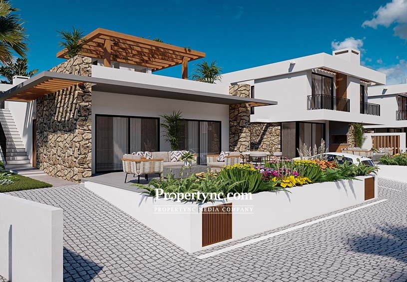 In this project which ensures a peaceful life, main living areas are located towards the sea views. There are private parking lots for each houses within the site and there are two main entrance gates. Along with rocks, woods, Yellowstone and such materials are used as local manufactures, the designs are inspired by old Cyprus houses. Green lands and pool are located in the middle of the site with eased access. This project provides a golden investment opportunity in Yenierenköy due to payment plans adapted to all sorts of budgets.