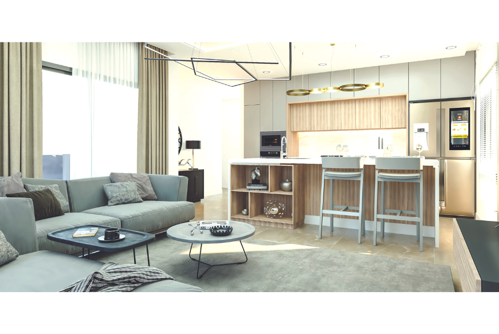 Every apartment has a sea view, large terraces, and barbecue areas on the balconies. Equipped with features such as suspended ceilings and spot lighting systems, custom-designed kitchens, granite countertops, natural marble staircase steps, built-in wardrobes, air conditioning infrastructure, and security systems, Wave Residence offers family comfort and freedom.