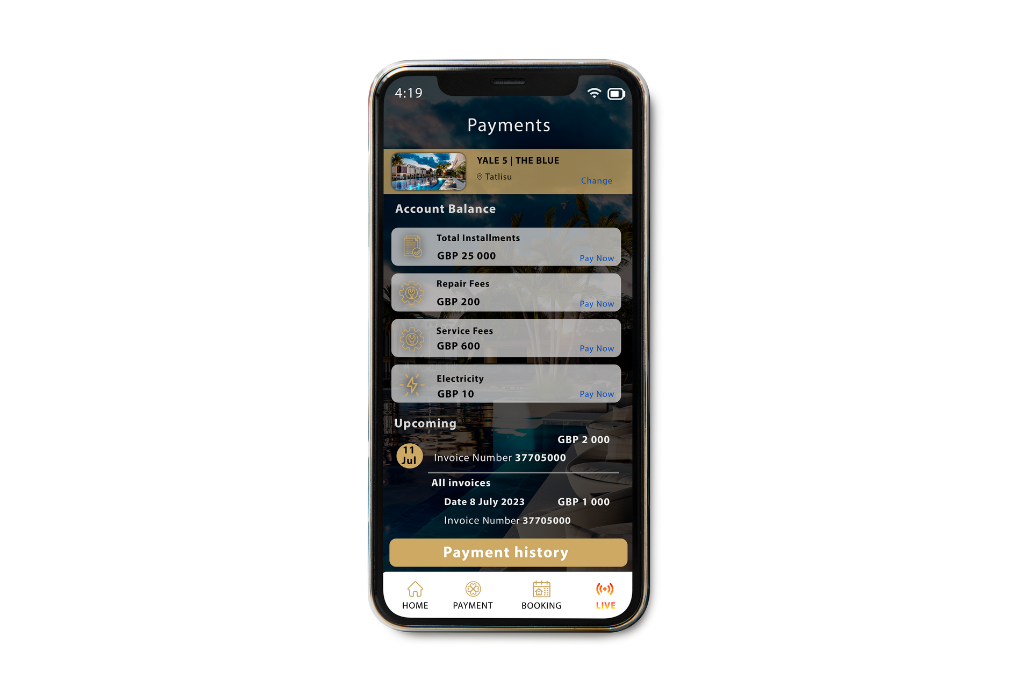In addition, managing financial transactions will become much easier with EMPERIA STYLE. Payment details, invoices, and transaction history can be viewed within the app, and payment schedules and reminders will help you effortlessly keep track of your payments.