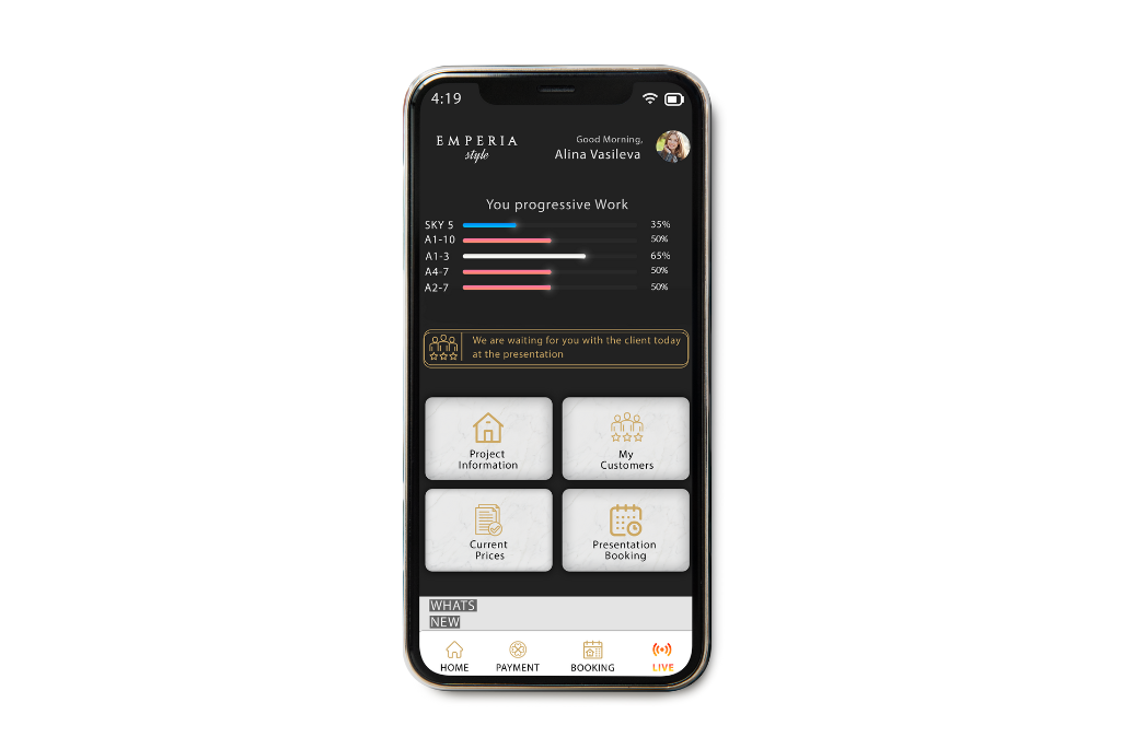 EMPERIA STYLE, with its news notifications, provides the possibility to stay informed about developments at all times, offering real-time information flow about the construction process. You can instantly follow project progress, important announcements, and stages through your phone.