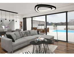 Each villa is equipped with multi-inverter air-conditioning, central heating, central TV and satellite systems and Internet. The Italian Lapitec kitchen worktops and first class kitchen units have created an elegant and practical environment. The large kitchen has an island bench and large windows and doors have been used to ensure you enjoy the breath taking view of the garden from the kitchen, whilst enjoying your family meals. Aluminium framed double glazed windows and steel doors provide heating insulation but also add an aesthetic touch. The 5x10 swimming pool adds the final touch to the luxury 4 bedroom villas.