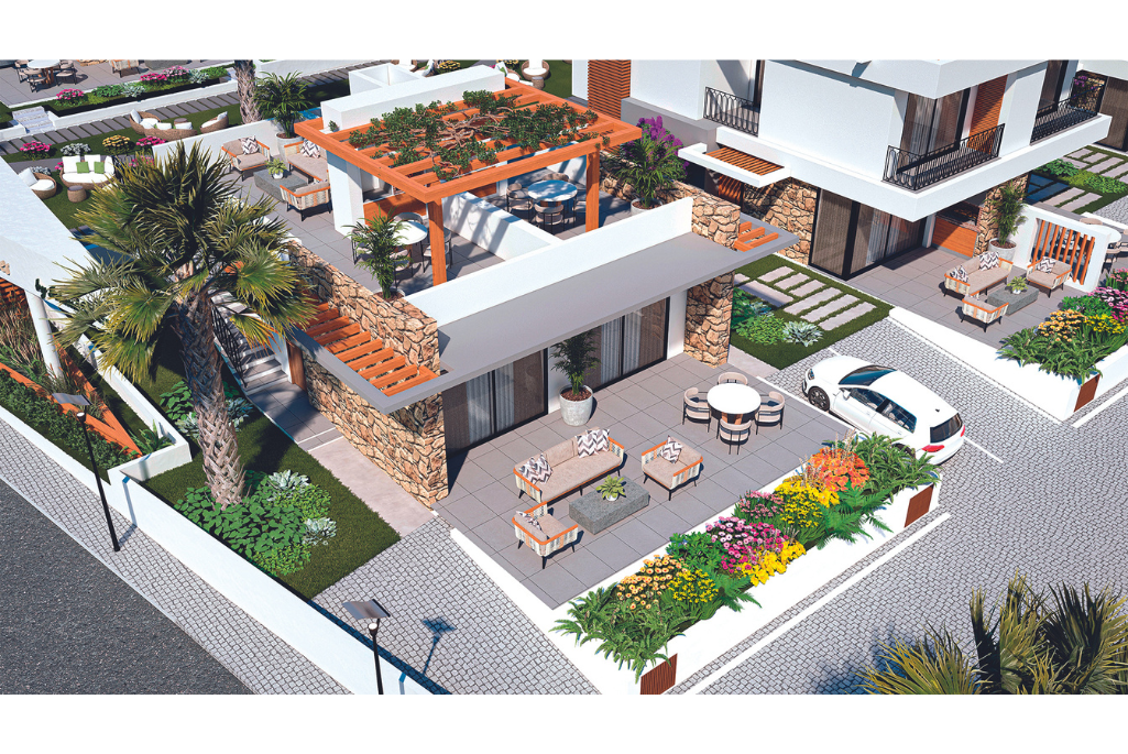 - Terraces with open and semi-open pergolas on the ground