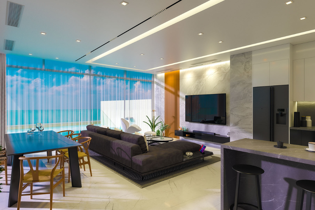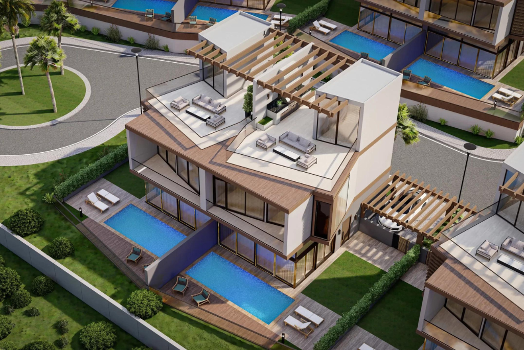 You will always feel yourself in green and blue views with the wide-angle view provided by it’s unique architectural design. You will be able to cool off in your 24 m² deatched pool, enjoy the first lights of the sun and sunset on your terrace with a unique view of 74 m² and 6m² balcony.