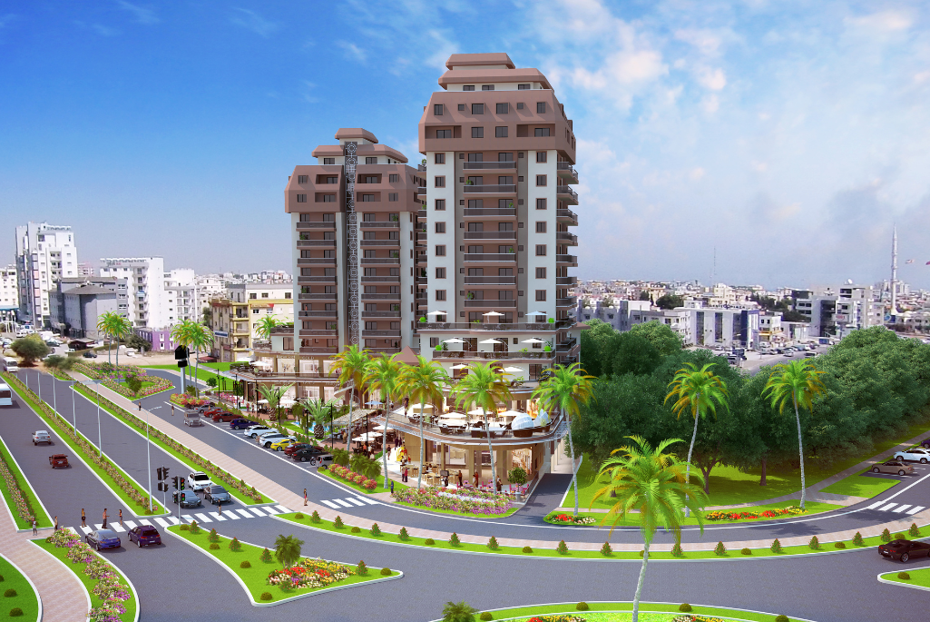 Angel Towers project is a candidate to become the new face of Famagusta, which will be the symbol of its kind with its magnificent structure dominating the view from all directions of the Famagusta city. This modern and luxurious complex is designed for clients who have a unique sense of architectural style. It consists of 2 high-rise buildings, offering one and two-bedroom apartments, 37 commercial shops on the ground and first floors, underground parking, and services. 11-storey Block A and 13-storey Block B are supplied with quick and quiet elevators for easy access to each floor and offer you a great range of apartments with the spectacular view of Famagusta city and a top location from where you can just walk to practically everywhere - banks, schools, universities, restaurants, shopping centers, fitness center, entertainment centers, Famagusta Port, historical sites, beach, bowling halls, etc.