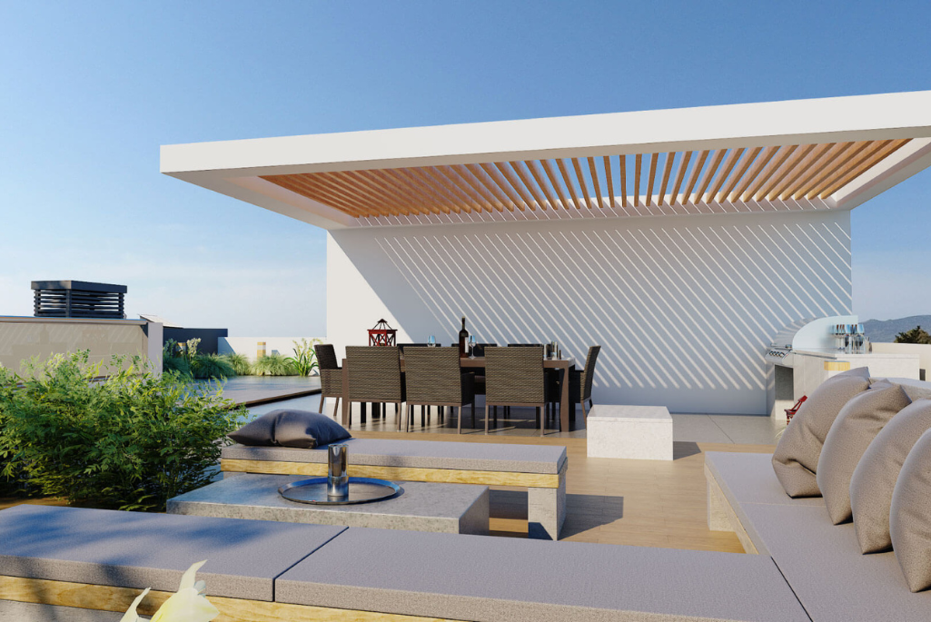 All the villas at the Bella Vita project are provided with a built-in barbecue on the terrace, garage, and fireplace. The 4 bedroom 230 m2 villas have a two-car garage, whereas the 330 m2 4 bedroom villas have an extra pantry. The 3 bedroom 165 m2 villas on the other hand have a spacious floor plan.