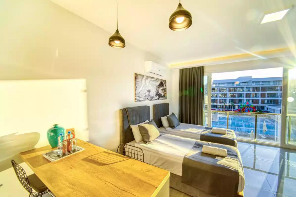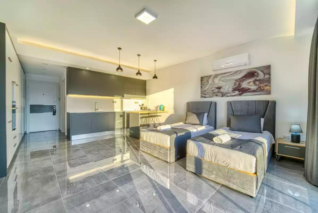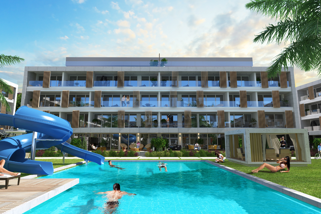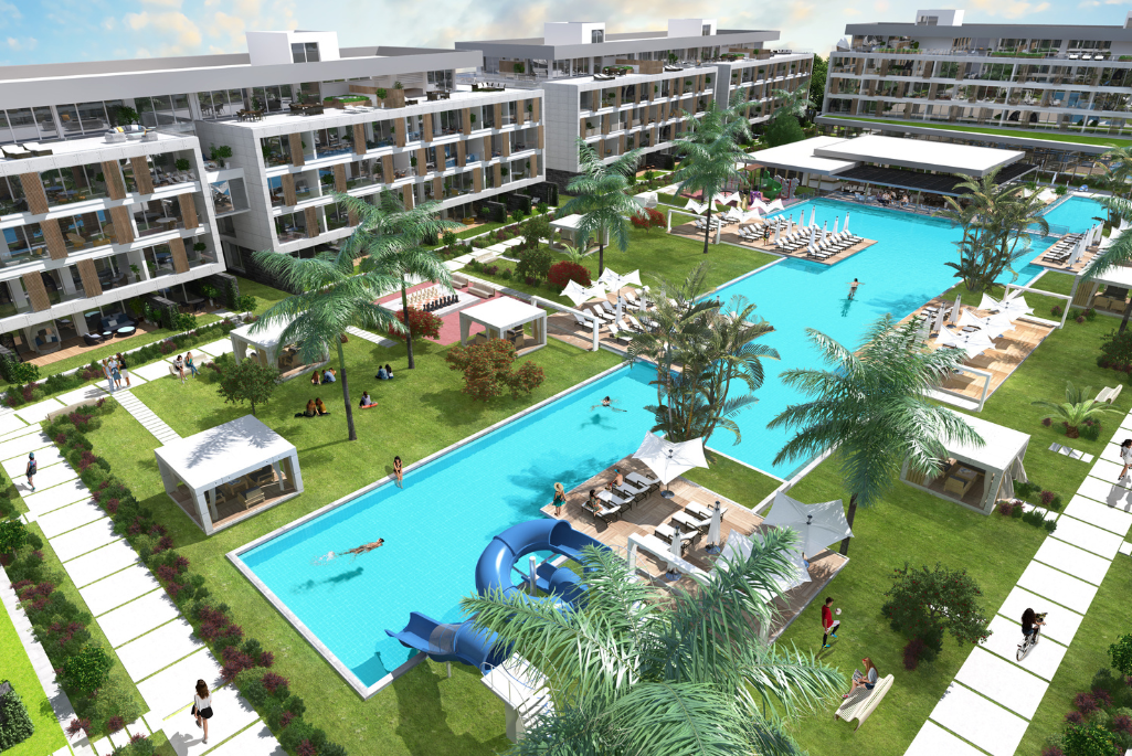 It is a 2-minute walk from Long Beach, one of the most beautiful beaches in Northern Cyprus with its excellent geographical location, and 10 minutes from the Hospital, Shopping Center, and Eastern Mediterranean University. Featuring a 5-star hotel concept, Courtyard Long Beach offers its homeowners a daily vacation. In the Courtyard project; Studio offers 420 apartments with 1 + 1, 2 + 1 and 3 + 1 apartment alternatives. In addition, due to the scarcity of hotels in the region, it offers high daily rental income to its investors.