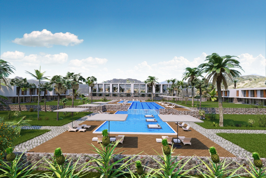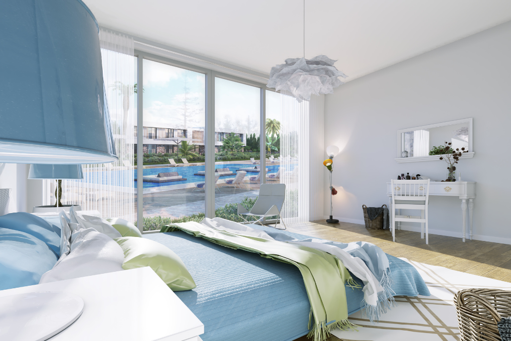 Deja Blue is a housing project that reached a high sales figure in a short time despite the high number of residences of 209 units and sold out before the construction even started. Evergreen Development is known as a company that has proven its talent in international marketing and has no difficulty in promoting Northern Cyprus to foreign investors and finding buyers for its projects. Offering housing options from studio flats to 5-bedroom villas, Deja Blue also draws attention with its Eco-Wellness Center. The project was built on 100,000 m2 of land with its focus on ecological architecture and great importance was given to green areas.