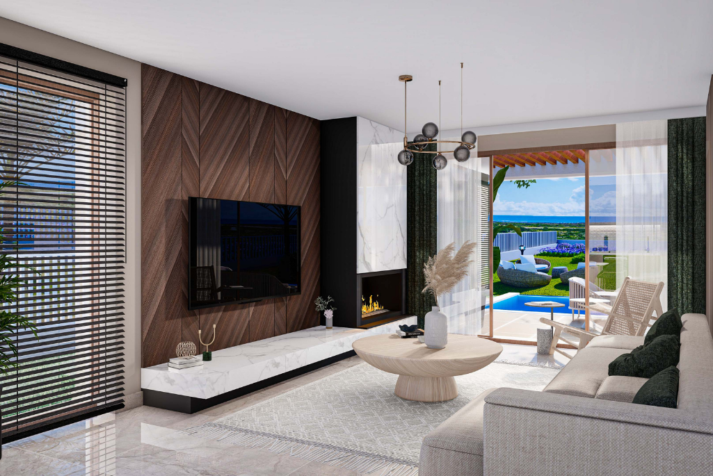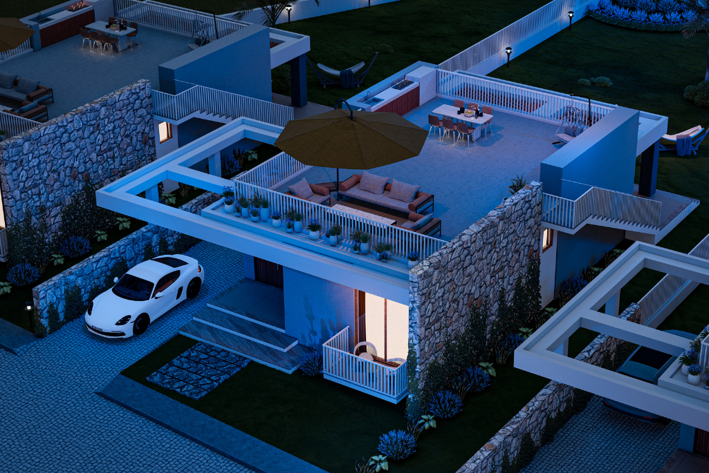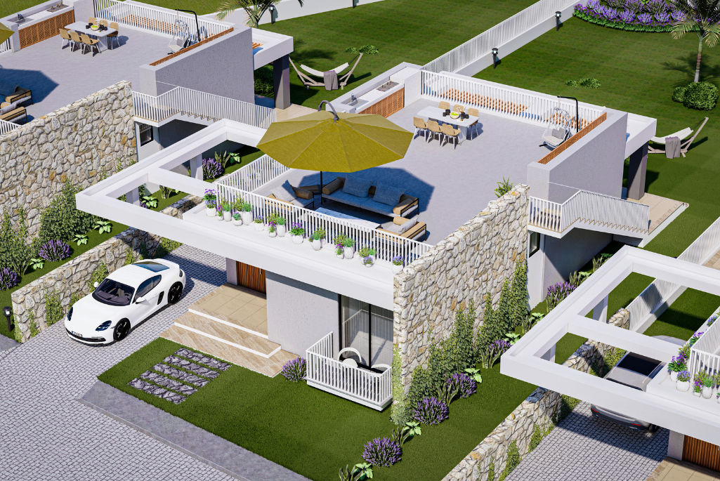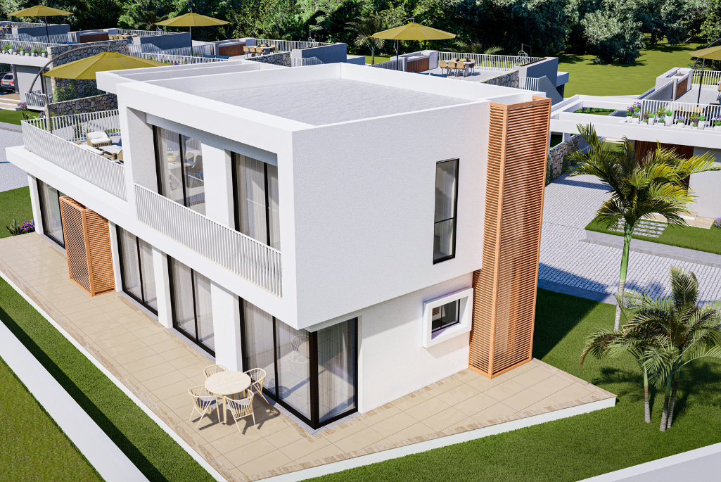 Our project, located in Yeni Erenköy, presents green and blue like a unique painting. The "Green & Blue" project, named after its location, was designed with inspiration from the unique nature of Yeni Erenköy. Karpaz is the only region of the island of Cyprus where the green vegetation and the deep blue sea meet.