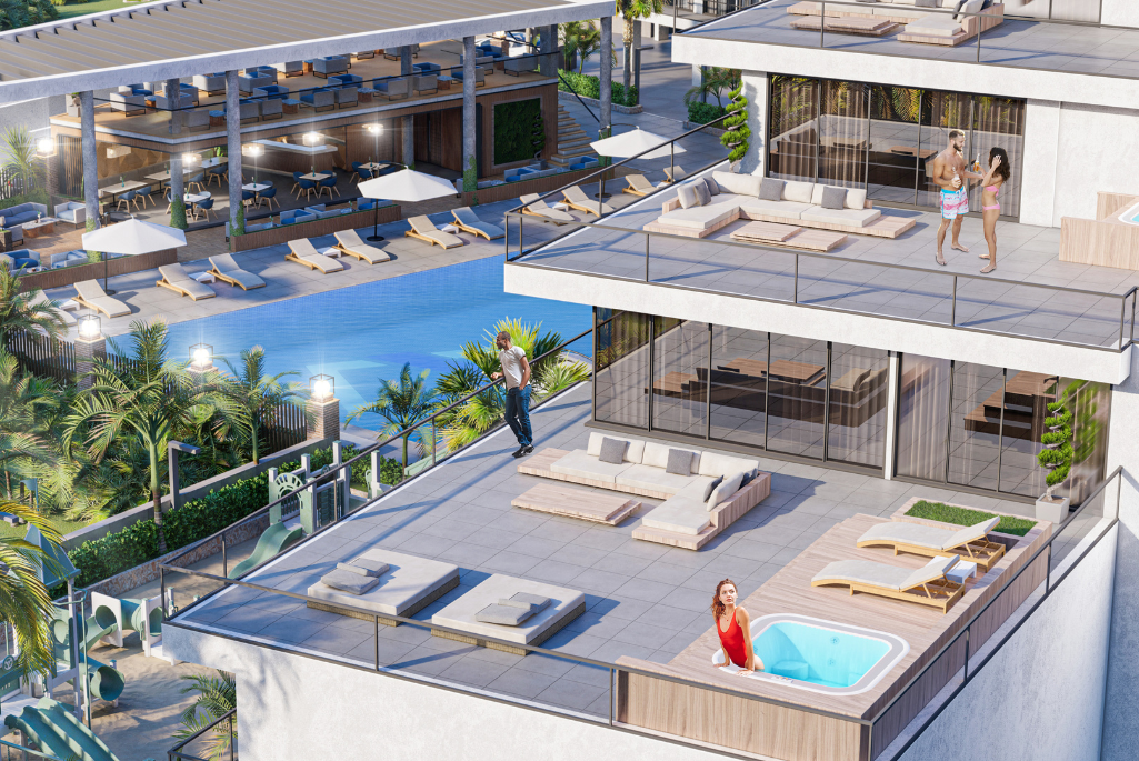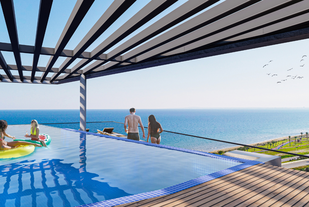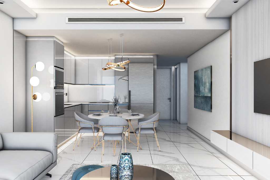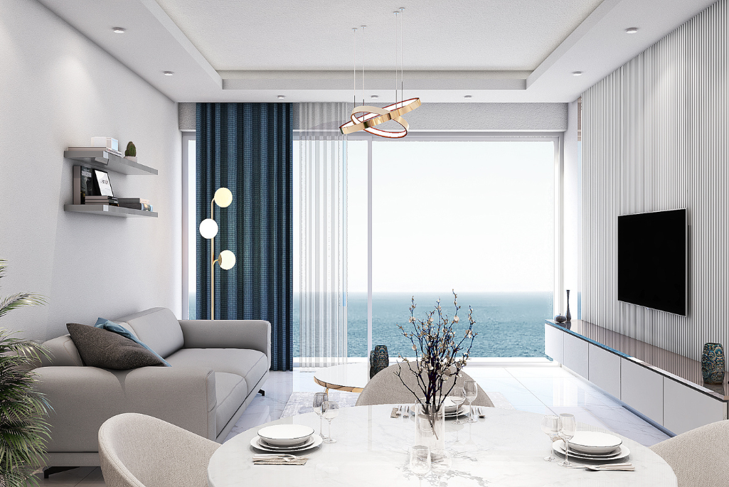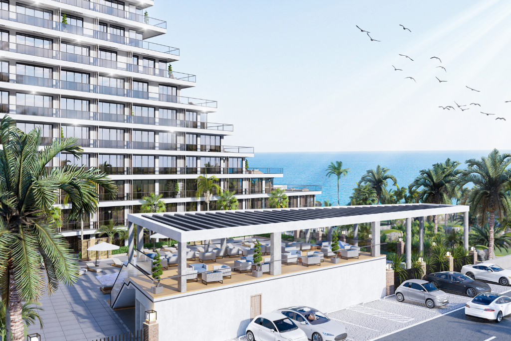 The project is located on the border of the line parallel to the coast, which is determined as 2 floors in accordance with the zoning rules, and 180 meters from the sea, within a two-minute of walking. With communal indoor areas on the ground floor, all apartments from the first floor are directed towards the sea and designed to have a view. With the market, fish restaurant and park area located within a 100-meter circle around it, a life setup in the heart of Long beach contributes to a high-quality living.