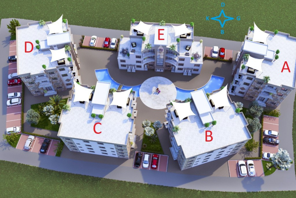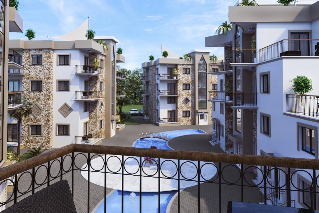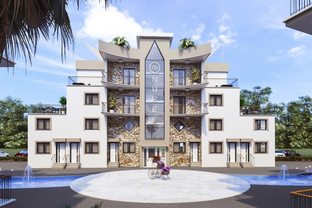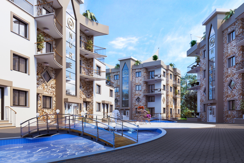 Nurel Melis Sitesi apartment complex from Nurel Group is located in the picturesque suburb of Alsancak Within walking distance to supermarkets, shops, the sea with magnificent sandy beach, and the most popular hotels in Cyprus MERİT ROYAL Single, two and three-bedroom apartments with views of the sea and the mountains in a quiet area surrounded by fruit trees at affordable prices await you. New City complex, which consists of 5 blocks, will be completed in 24 months. Fenced wrought fence with a barrier for the safety of your children, who will play on the playground and swim in the pool, which is located within the complex. Finishing materials and built-in wardrobes for the ideal life you choose by your taste. Everything is for you.