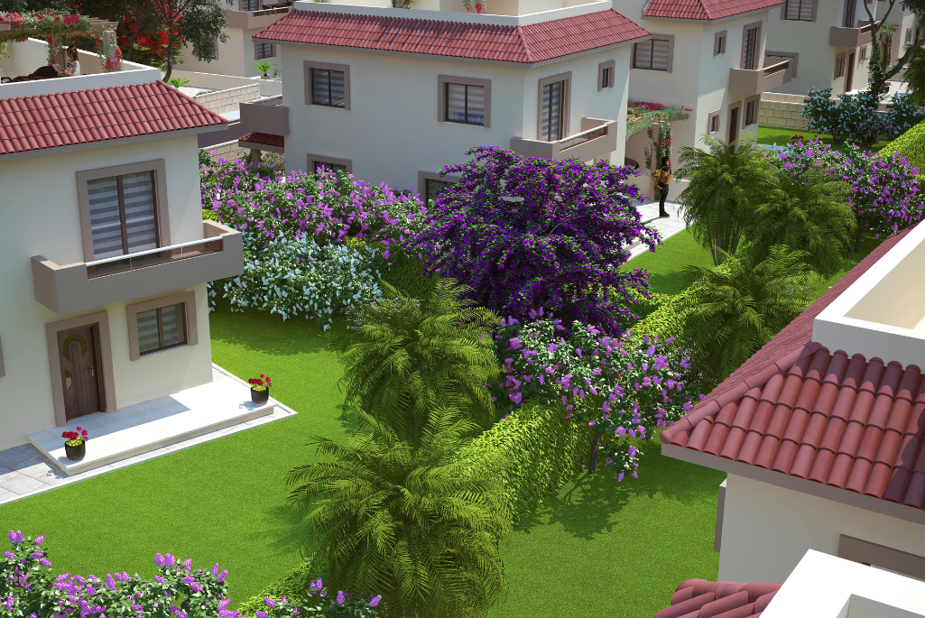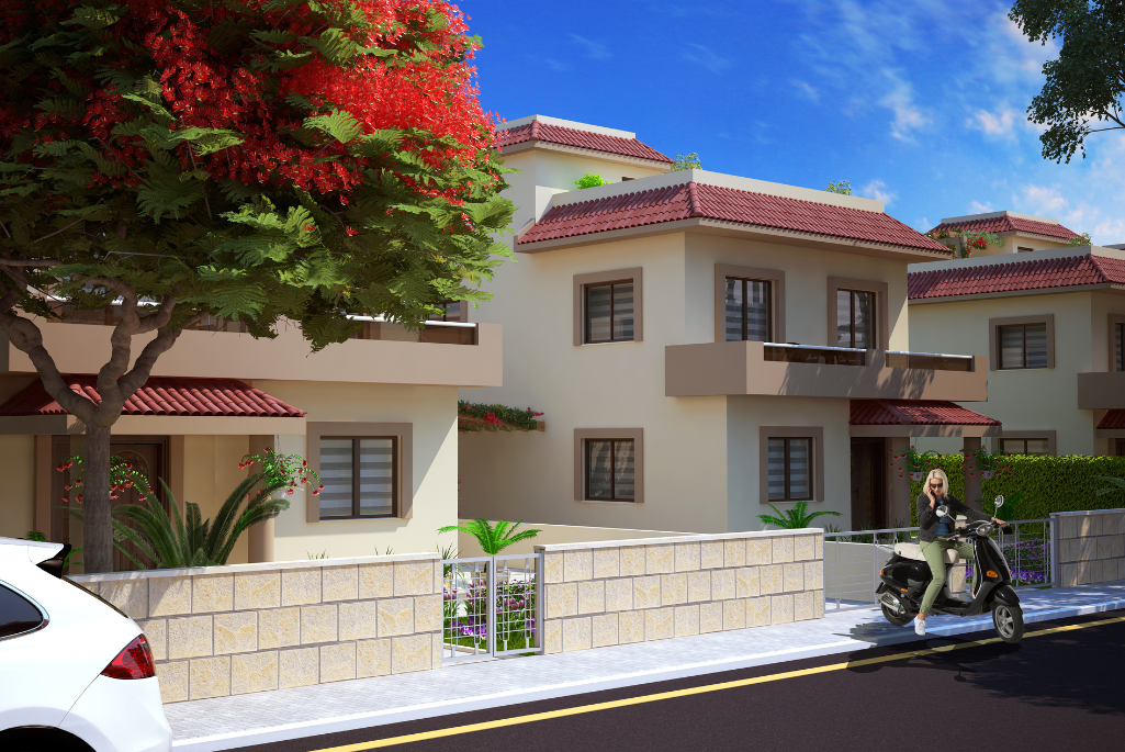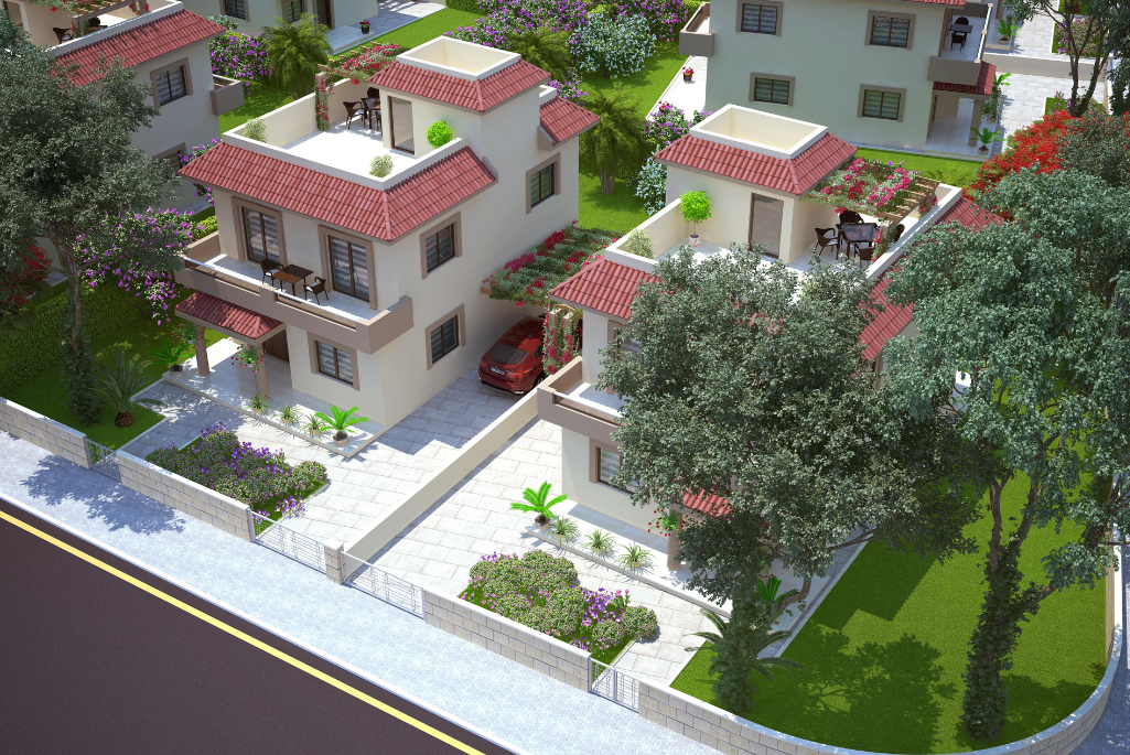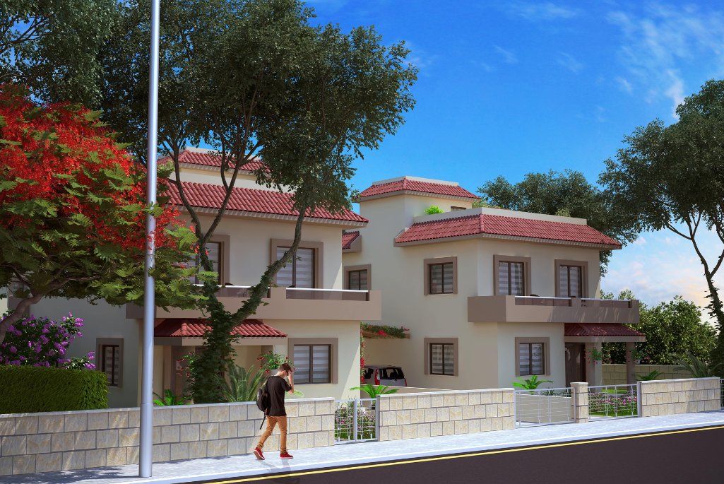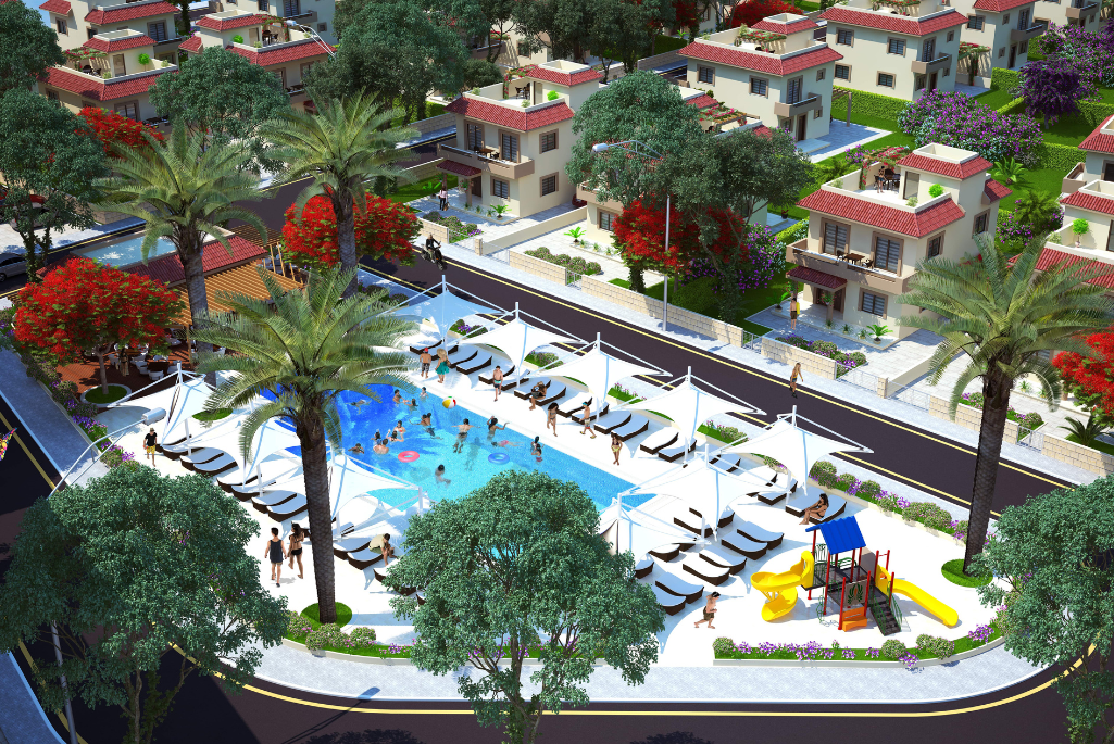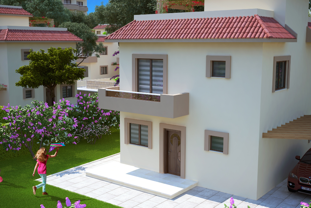 Consisting of 52 150m2- 170m2 villas, this site offers common green areas, swimming pools, kids playgrounds, and security.