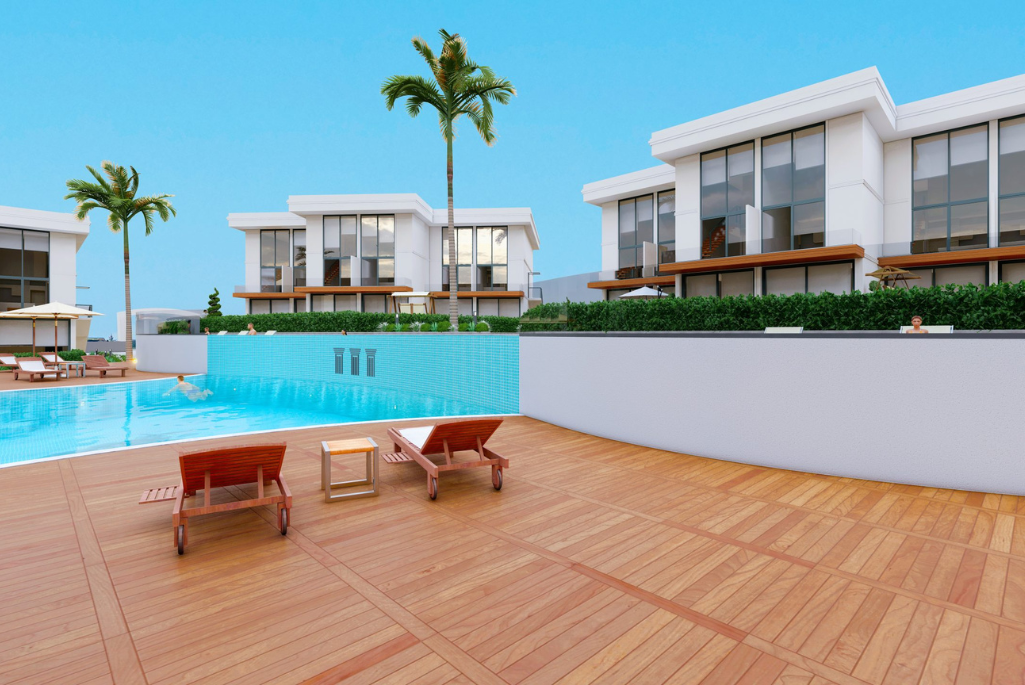 Siesta Beachfront Homes project is located just above the Kyrenia Esentepe beach, which consists of 27 Residences, Common Swimming Pool, Walking and Recreation Areas, Restaurant, Yoga/Plates Area and is within a few minutes' walking distance to the market, pharmacy and restaurants. In the Vikingen project, two different type of 2-bedroom apartment options are enriched with gardens and terraces. All apartments are 2 bedrooms with 2 bathrooms designed. Apartment entrances are planned to have privacy like a detached house and minimum connection with neighbors.