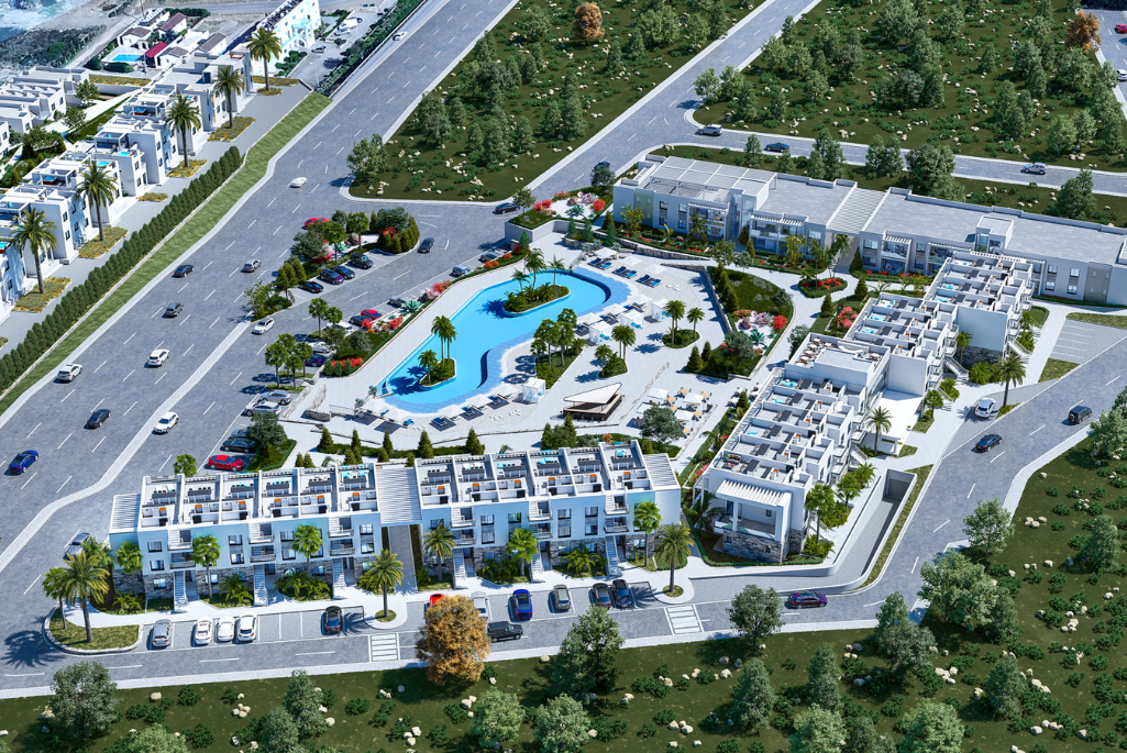 Sun Valley Seaside is an exclusive and luxurious part of the Esentepe area and it has its own private beach, marina, chapel, and lighthouse. Sun Valley Seaside consists of two villages, Cove Village and Cove Garden Village, which are both located just next to the beach and have a short driving distance to markets and other facilities. The apartments have contemporary interior and exterior designs that feature wide windows to compliment the surrounding environment. This way, the residents will be able to make the most of the sea views and the sunlight while living in a spacious and comfortable home.