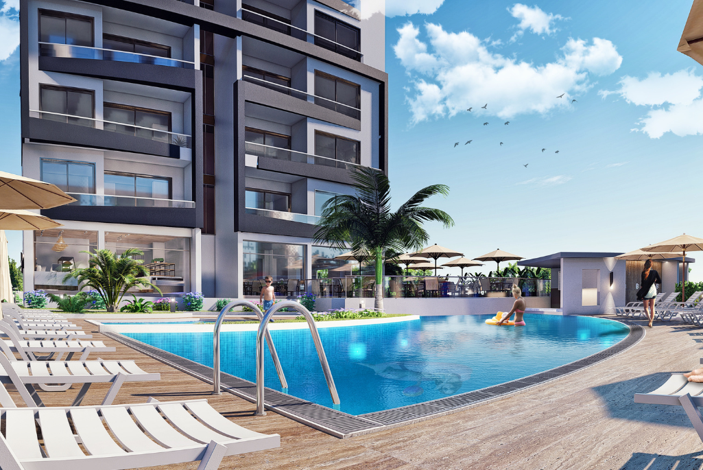 Modern luxury apartments with (1 + 1, 2 + 1, 3 + 1) for rent and sales within walking distance to the beach in Yeni Iskele Zodiac.