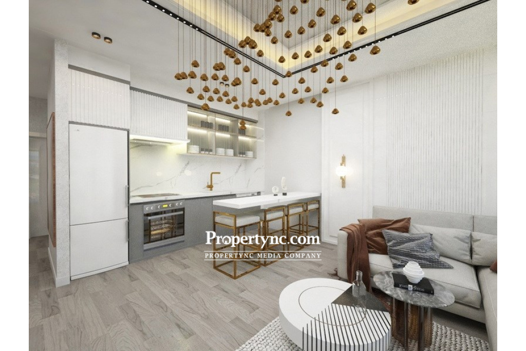 1-bedroom brand new penthouse apartments + roof terrace + storage area + outdoor heated and covered infinity pools + Turkish hammam + sauna + steam room + mini-golf + gym + pilates area + yoga and meditation area with a waterfall + indoor children’s room +