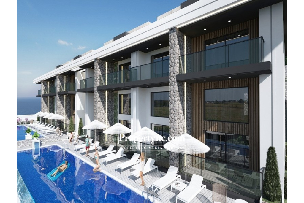 Immerse yourself in the serenity of Esentepes enchanting coastline and enjoy the luxurious offerings of exotic apartments and bungalows by the hillside that have superb and unobstructed views of the azure Mediterranean Sea and the mountains. Exquisite architecture and the highest level of finishing are exactly what you will get when you become a resident of the complex. The equipped sandy beach of Esentepe, a restaurant serving European cuisine and a supermarket are within walking distance from the complex. This is an ideal choice for nature lovers looking for a permanent or a holiday home. The area of the land plot is 15,000 square metres. This exclusive development will comprise 6 blocks combining two-bedroom loft apartments on the ground floor and one-bedroom apartments with roof terrace on the first floor. In addition, there will be 11 blocks of charming three-bedroom bungalows with a private terrace and pool. Each apartment and bungalow have been carefully designed to provide a harmonious blend of modern comfort, high quality materials and architectural elegance, providing truly luxurious living for our discerning clients. All apartments and villas will have a beautiful view over the sea. 1+1: closed area 46.5 m2 + balcony 9.6 m2 + roof terrace 40 m2 Loft apartment 2+1 layout: closed area 73.9 m2 + balcony 9.6 m2 Bungalows with 3+1 layout with two bathrooms: closed area 122.35 m2 + terrace 60 m2 The main focus of this project is your comfort and the refined atmosphere of a Mediterranean residence. You will feel this in everything that surrounds you: from panoramic views of the sea to the luxurious infrastructure of the residential complex. Whether it's a one-bedroom apartment or a luxury bungalow, each with its own flowery name, the quality of construction and finishing will pleasantly surprise you. To preserve light and space as much as possible, the developer uses panoramic windows. The bathrooms will have underfloor heating, and the roof terraces will be equipped with summer outdoor kitchens, showers and barbecue areas. For lovers of active recreation, we offer the most modern training equipment in its exclusive fitness center overlooking the sea and the surrounding area. If you want to enjoy a calm atmosphere in the fresh air, the complex offer you cozy green areas on the territory of the complex. You are guaranteed a luxurious and effective holiday in the spa center. If you want to relax and rejuvenate? Visit the sauna, steam room or Turkish hammam. Stretch or meditate while listening to the relaxing sound of a waterfall in the yoga room. While you enjoy other social areas, let the kids have fun in the playroom with TV, a large selection of art supplies and toys. 46.5 m2 internal area 9.6 m2 balcony 40 m2 roof terrace Storage area for each apartment Exchange title deed VAT to pay Outdoor heated and covered infinity pools Completion: End of 2026 1 bedroom penthouse apartments 1 bathroom Double glazed aluminum windows Fitted kitchen cupboards Fitted wardrobes Water filter system Outdoor kitchen Wooden pergolas Turkish hammam Sauna Steam room Mini-golf Gym Pilates area Yoga and meditation area with a waterfall Indoor childrens room Business room Private parking Rental and site managements Trafo fee: £2,500 Maintenance fee: from £80 to £100 per month Payment plan: - £2000 deposit - an initial payment of 35% is made within a month and instalments for up to three years are provided for the remaining amount. - choice between monthly payments or payments at intervals of 2-3 months. - REF: 2153