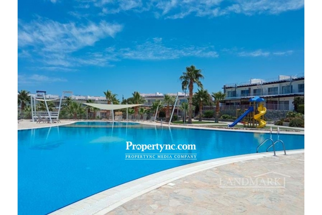 This amazing newly built complex is both an idyllic home in the sun and an excellent investment opportunity for you! This beautiful 1-bedroom ground floor apartment is designed to be an ideal holiday home. It is hidden in a quiet area in Bahceli, just near the sea. It is situated in a wonderful well-maintained holiday complex, which has a big communal pool, childrens playground, and other necessary amenities and it is only a short walking distance from the beach. Located within walking distance to the sea and has direct views of the Mediterranean. The apartment is situated on the ground level and has the access to a private garden with a terrace overlooking the sea. The apartment has a lounge which is spacious with large wall-sized windows taking advantage of the wonderful sea views. with the sea views, open plan fitted kitchen, family WC. The bedroom has fitted wardrobe and an en-suite with a shower and a sink. The bedroom has beautiful mountain views. Award-winning architects were brought to build this project which is set close to the waters edge and set within nature with beautifully landscaped gardens and leisure walking paths that run throughout this holiday complex. Ground floor 53m2 Communal pool VAT to pay 1 bedroom 1 x family bathroom Fitted kitchen Terrace with a sea view Gym Childrens playground Café bar on site Shop for basic needs Rental potential and can sleep up to 4 people - REF: 436i-a