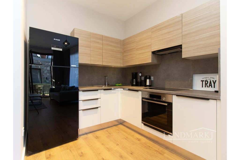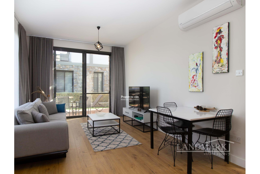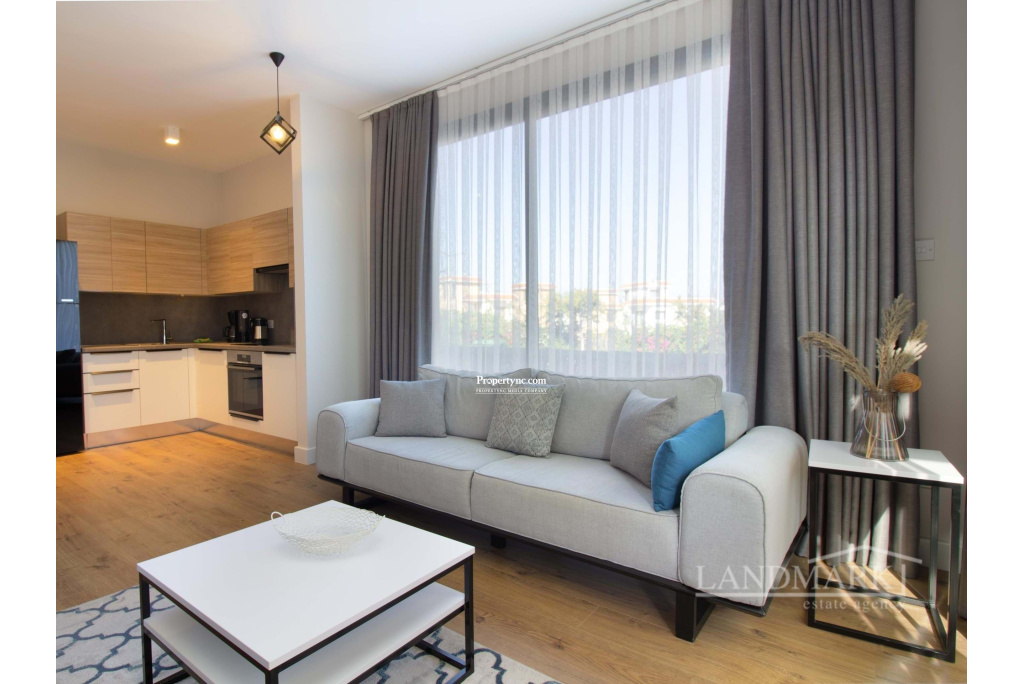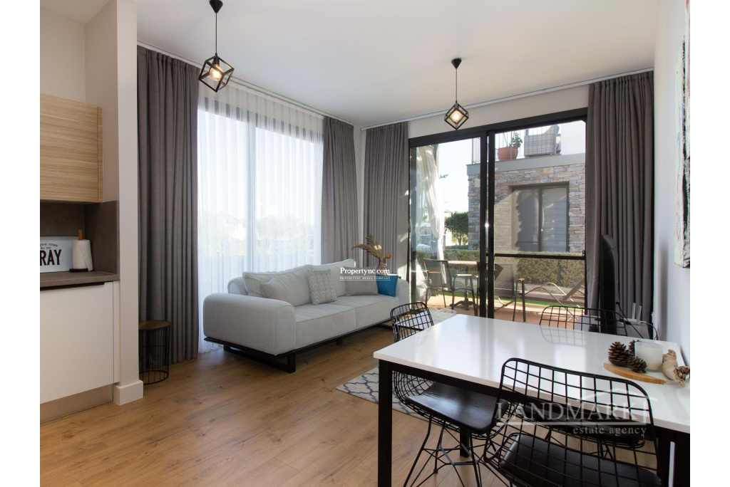This luxurious one-bedroom apartment is located in a holiday complex within walking distance of the renowned beach club and Municipal Green Park. The complex boasts its own indoor spa center complete with a pool, hammam, sauna, restaurant, gym, and spa salon. Additionally, it offers a coffee bistro on-site and a communal swimming pool. The apartment features a stylish interior design complemented by high-quality furniture, equipment, and accessories. It includes an open-plan kitchen fitted with top-notch white goods. The comfortable living room opens up to a private garden and a terrace equipped with garden furniture. The bedroom comes with floor-to-ceiling fitted wardrobe. The family bathroom is equipped with high-quality integrated fittings and a frameless shower. This extraordinary holiday apartment is ready for immediate occupancy! 62m2 covered area 53 m2 garden Terrace Exchange title deed Completed 2020 VAT to pay Communal swimming pool Spa centre with indoor pool, sauna, hammam, gym, jacuzzi, spa salon A coffee bistro on the site 1 bedroom 1 family bathroom Fully fitted modern kitchen Kitchen appliances Air conditioning x 2 Automatic irrigation system Garden furniture Parking place Landscaped garden Mountains views Walking distance to the beach Municipal Park Vine yard - REF: 1075u