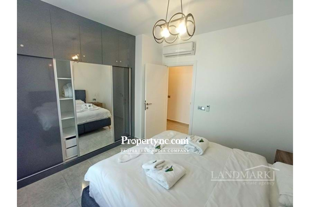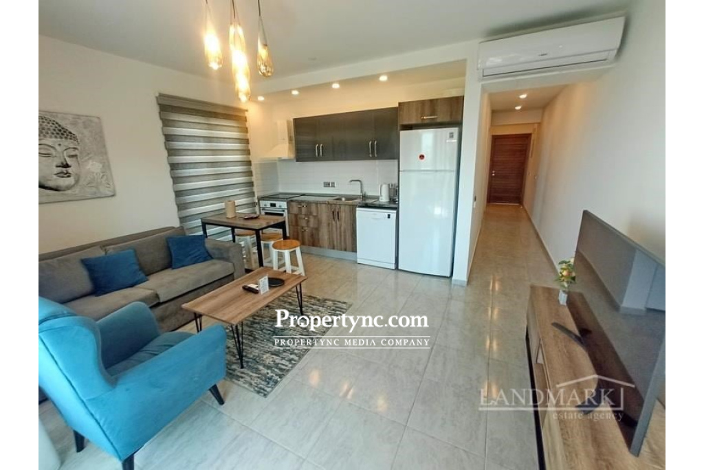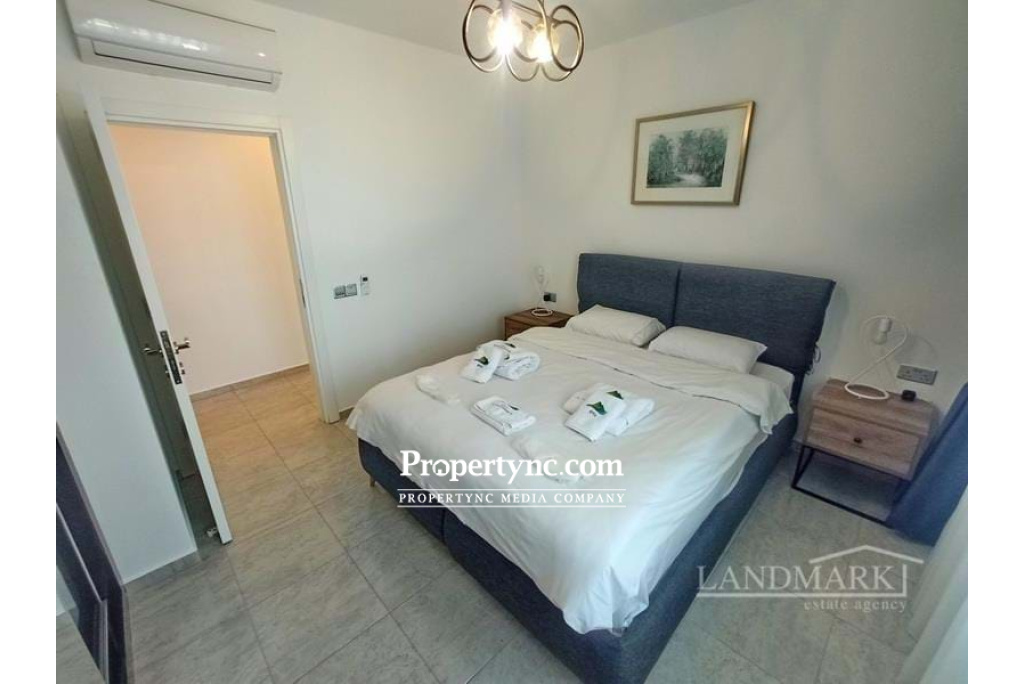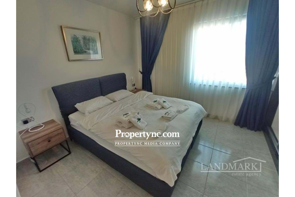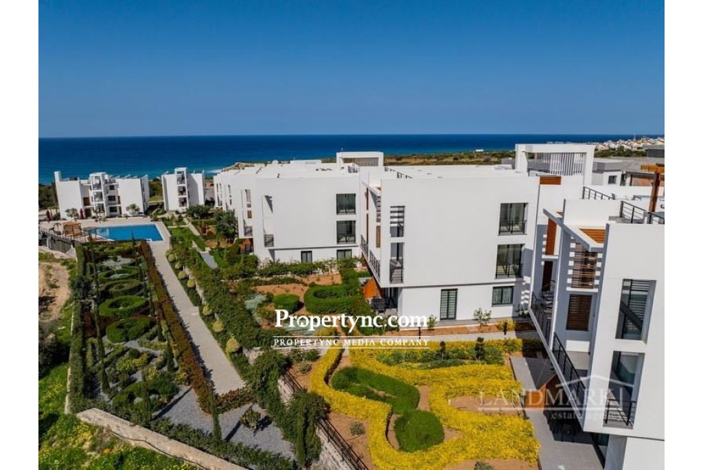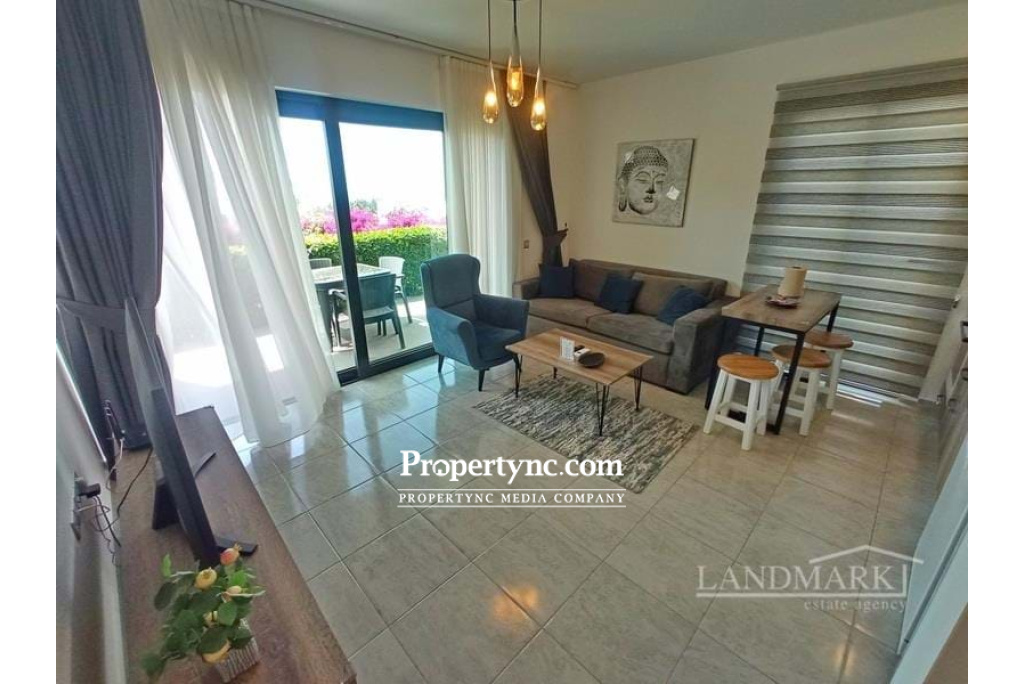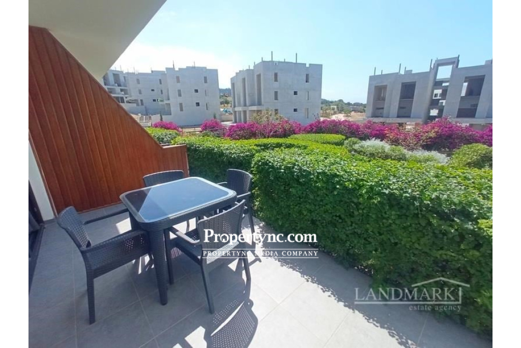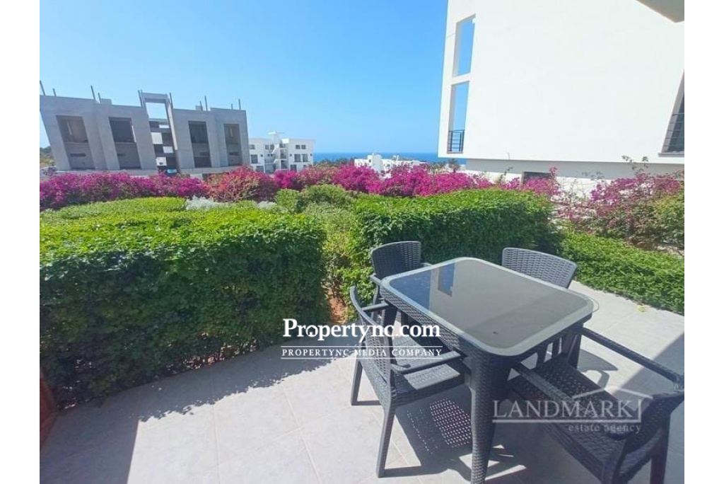This stunning 1-bedroom ground floor apartment is tucked away in a serene, picturesque area near the sea, offering breathtaking views of both the sea and mountains. Nestled within a newly constructed modern complex, the property features a beautifully landscaped garden, a communal swimming pool overlooking the sea, and a bar restaurant. The apartment is tastefully furnished with high-quality, modern furniture and appliances. It includes a spacious lounge room with an open plan kitchen, fully equipped and leading out to a terrace with garden furniture. The terrace opens up to a stunning view of the sea. There is also 1 bedroom with AC and fitted wardrobe and 1 bathroom in the apartment This remarkable apartment is move-in ready. 55 m2 internal area 10 m2 terrace Exchange title deed Completed 2022 Title deed in the builders name VAT to pay Communal swimming pool Fully furnished 1 bedroom 1 family bathroom Fully fitted kitchen with wooden worktops Air conditioning x 2 Ceramic flooring Spotlights Irrigation system Generator Parking place Stone wall surround Communal landscaped garden Close to amenities Bar restaurant on site Walking distance to public beach and supermarket Sea and mountain views Maintenance fee is £60 per month - REF: 1345f-2