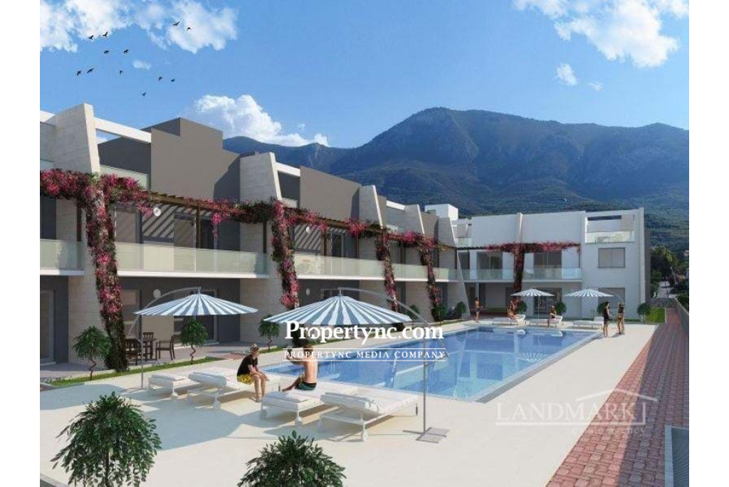 We are very pleased to offer you this brand new development which is currently close to completion located in Dogankoy, within easy reach of the Kyrenia city is this lovely spacious 1-bedroom ground floor apartment. Dogankoy is a great place to reside as it is a close distance to the center of Kyrenia and the beautiful horseshoe harbor it is also close to all amenities and some lovely beaches. Within a 5 mins drive you have many basic needs such as hospitals, grocery stores, gas stations, restaurants, pharmacies, hairdressers, shops, entertainment venues, and many more. The project is built with quality and has a modern style of todays construction all under the same roof, we offer you a life with social areas in the natural beauty of the Mediterranean Sea. Internally, there is an open plan kitchen and lounge. Lounge with access out to a private terrace. The kitchen is a good size with a granite worktop. Separate to the living area are 1 bedroom with fitted wardrobe and a family bathroom. 68.7m2 internal area 11.3m2 terrace Completion - 2023 Exchange title deed VAT to pay Communal swimming pool 1 bedroom 1 bathroom Air conditioning system infrastructure High-quality laminated kitchen and steel sink Granite worktops High-quality laminated parquet flooring in bedroom High-quality ceramics Aluminum double glazed windows Fitted wardrobe Decorative suspended ceilings Landscaping Underground parking Storage room in the underground parking - REF: 514g-1