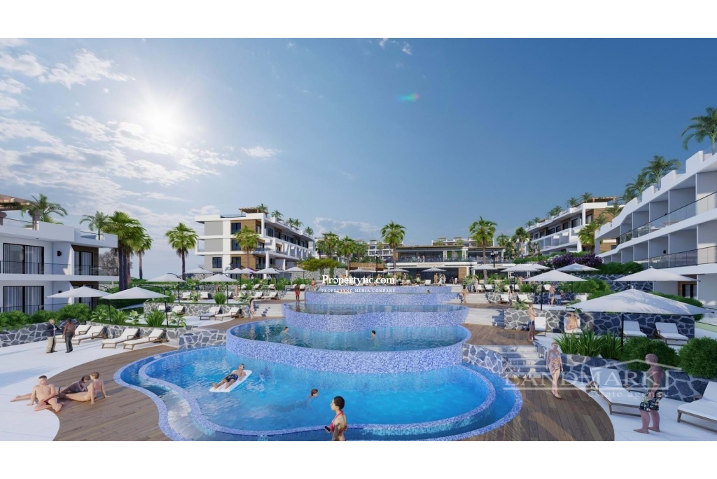 This amazing modern residential complex will be located in a picturesque corner of Northern Cyprus. The complex is both an idyllic home in the sun and an excellent investment opportunity for you! Studios and 1,2,3-bedroom apartments will be located with spectacular views of the Mediterranean Sea and Mountains in just a short distance to the beach! Esentepe is one of the fastest-growing property hotspots in North Cyprus. The site is perfectly located on a picturesque cliff at the seafront with sea and mountain views from every corner of the development. This is a unique development designed in a resort-style with all the amenities you can use and enjoy. The sites amenities include outdoor and indoor swimming pool, sauna, gym, outdoor sports field, tennis court, bicycle path, children's playground, supermarket, restaurant, bar, barbecue areas, mini golf, management site office, and services: taxi, pharmacy, laundry, car rentals, electronics shop, supermarket, travel agency, karaoke and disco, Chinese restaurant, game centre, internet Café, computer, repair centre. Your ultimate gateway to dream life! Sites amenities include Outdoor and indoor swimming pool, sauna, gym, outdoor sports field, tennis court, bicycle path, children's playground, supermarket, restaurant, bar, barbecue areas, mini golf. Unique seafront location Highest quality standards Spectacular Sea and Mountain views Extensive infrastructure Villas and apartments Quality finishing Rental Rental guarantee Nearby beach Interest-free instalments Mortgage from the developer (term: up to 5 years) February 2024 Delivery Date Studio 1 Bedroom 1 Bathroom 42 m² 8 m² balcony 1+1 Bedroom 1 Bedroom 1 Bathroom 68 m² 8 m² balcony 1+2 bedroom 2 Bedroom 1 Bathroom 92 m² 15 m²balcony 3+1 Dublex Villa 3 Bedroom 2 Bathroom 120 m² Semidetached Ground floor 11 m², upper floor 12 m² balcony - REF: 508i