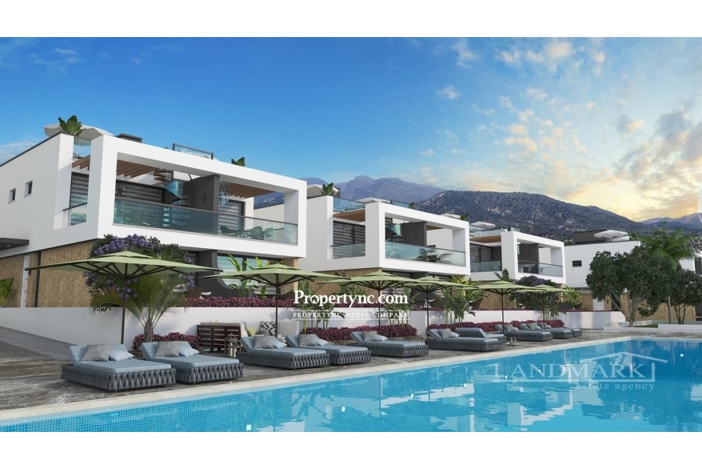 1+1-bedroom luxury Loft apartment + within a complex + communal pool + sea and mountain views