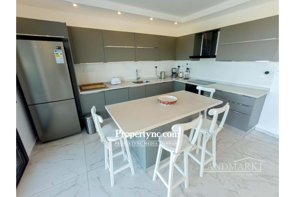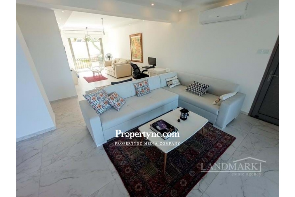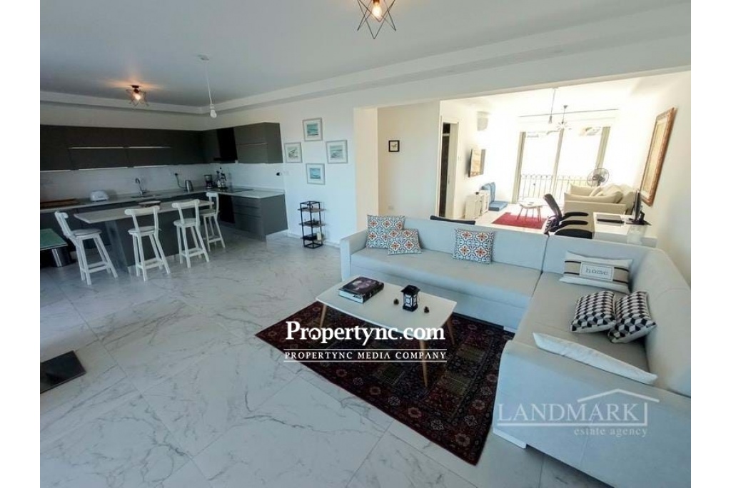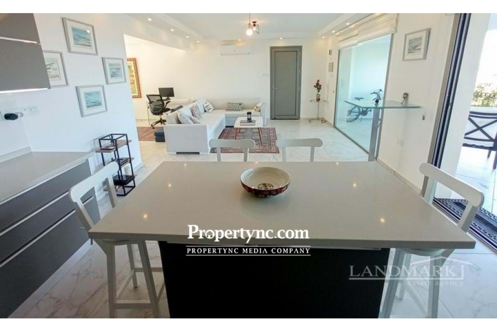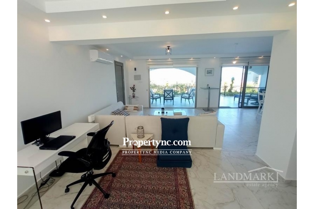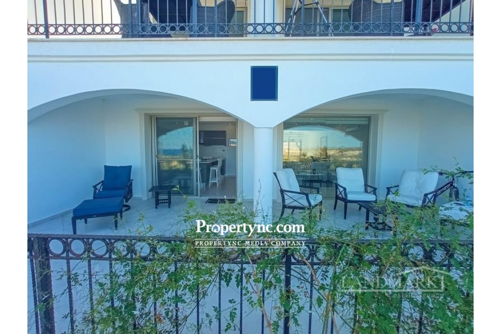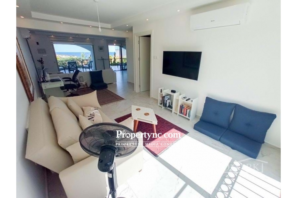 If you are looking for your dream holiday home in the sun then this is the site for you. This is a resale apartment with a unique location as it is front line to the sea which is very special. Stunningly located with spectacular views of the Mediterranean Sea and just a short 100m walk from the beach! Esentepe is one of the fastest-growing property hotspots in North Cyprus. This development is resort-style with all the amenities you would expect from a luxury site. The apartment is meticulously taken care of. Originally having 2 bedrooms they have converted the apartment and made many changes. The bedrooms were changed and also the bedrooms were extended out onto the terrace areas. In the lounge, you have a huge glass window in one piece to take advantage of the stunning view it has. There is one bedroom with an en-suite bathroom. One bedroom open plan den TV room that will sleep four as the den couch opens out into a bed. The den was the previously 2nd closed bedroom. The den has access to its own bathroom. The apartment is very spacious and comfortable for a couple. The lounge is open plan to the den, it is a spacious size with a large full glass window to sit and take in the amazing view of the natural beach cove with rocks and greenery, then looking out to the sea. You literally have a beautiful real-life picture sitting in the lounge. It is only a short walk to get down to the sea. The kitchen is open plan to the lounge with fully fitted modern kitchen units, granite worktops with an extra kitchen central isle. The front terrace is a good size, no problem for dining outside all year round. Outside there is a private storage space which is very convenient. The sites amenities include a private beach, communal swimming pool, fitness center, sauna, Jacuzzi, childrens playground, BBQ area, childrens football pitch, mini-golf, restaurant café & bar, management site office, and full maintenance services. 85m2 approx. internal area Exchange title deed Completed in 2018 Furniture included some from the U.S that was shipped over 1-2 bedrooms 1 bedroom and an open snug area Master with en-suite bathroom. Double shower Family bathroom Fully fitted upgraded modern kitchen Kitchen appliances Samsung Granite worktops Air conditioning x 4 Spotlights Grey double glazed windows Fly screens Outside storage area Mature established gardens Having a beautiful uninterrupted view of a cove Sites amenities include a private beach, communal swimming pool, fitness centre, sauna, Jacuzzi, childrens playground, BBQ area, childrens football pitch, mini-golf, restaurant café & bar, management site office, and full maintenance services Only 5km to the Korineum Golf course Maintenance £85 per month 2022 is already paid Can be changed easily back to the 2nd bedroom if needed - REF: 623f