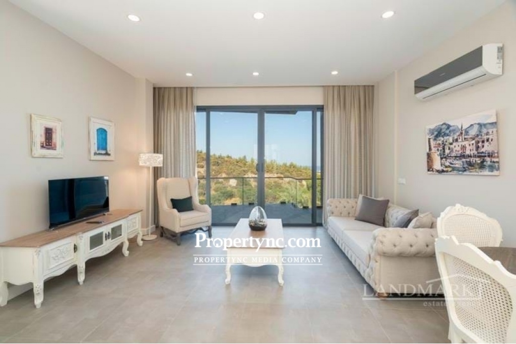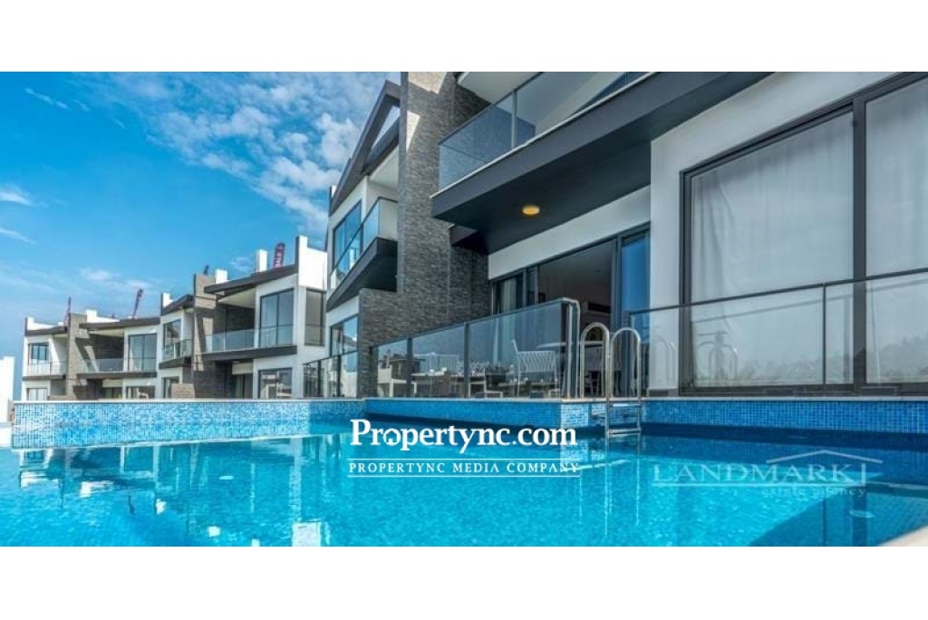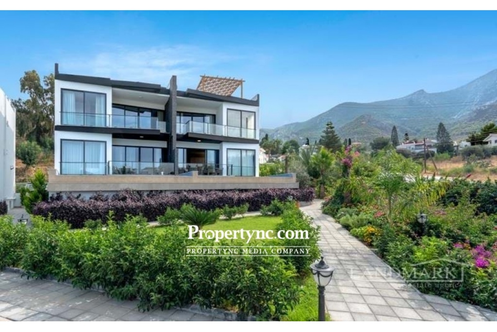 This is the newest, premier, luxury gated residence, located at the most prestigious address in Kyrenia. Built to the highest of standards, each large apartment is fitted with a host of luxury fixtures and fittings from across the world and is finished to a standard rarely seen in North Cyprus. They all have superb mountain and sea views and are within easy access of excellent local facilities and the beautiful town of Kyrenia. There is a communal Olympic sized swimming pool set in mature, lit, landscaped gardens which include extensive seating, picnic and BBQ area is also situated within the safe security fenced gardens. Each 4-bedroom split level residence is situated on the ground floor and offers the following luxury features: - 4 bedrooms, 3 with ensuite bathroom, 2 of the bedrooms benefit from a walk in wardrobe area fitted to the highest standard. - Underground storage area - Infinity pool Each 2 bedroom residence is situated on the first floor and offers the following luxury features - 2 bedrooms with ensuite bathrooms - Potential to be extended to 3 bedrooms - Large private roof terrace with toughened glass balcony, which provides unsurpassed views over to the sea and mountains. Standard features of our 5 star 10x4 and 10x2 bedroom luxury residences are: - Video intercom entry system - Dedicated Wi Fi for each block - Luxury internal hall - Bespoke, handmade hardwood front door with quality hardware - 3.2 m high ceilings throughout the property - Handmade hardwood 2,8m internal doors - Seranit luxury porcelain flooring - Argon filled double glazing throughout - BOSCH split inverter air con units in every room - LED inset spot lighting - Large lounge area with 3.2m floor to ceiling double patio doors leading to toughened glass balcony with extensive views - Laundry room with BOSCH washing mashing and a full range of hardwood cupboards 4 bedroom apartments 230 m2 total area 30m2 terraces and balconies 1873 Swimming pool 50 m2 Storage 15m2 2 bedroom apartments 120 m2 living area Terraces 130m2 Distance to: Kyrenia Harbour 5 km, (15 min drive) Nicosia Centre 35km (45 min drive) Ercan airport 38km (40 min drive) Larnaca airport 80 km (1 hr 15 min drive) Korineum Golf and Beach resort 20 km (20 min drive) Karpaz Gate Marina 95km (1 hr 20 min drive) - REF: 1873