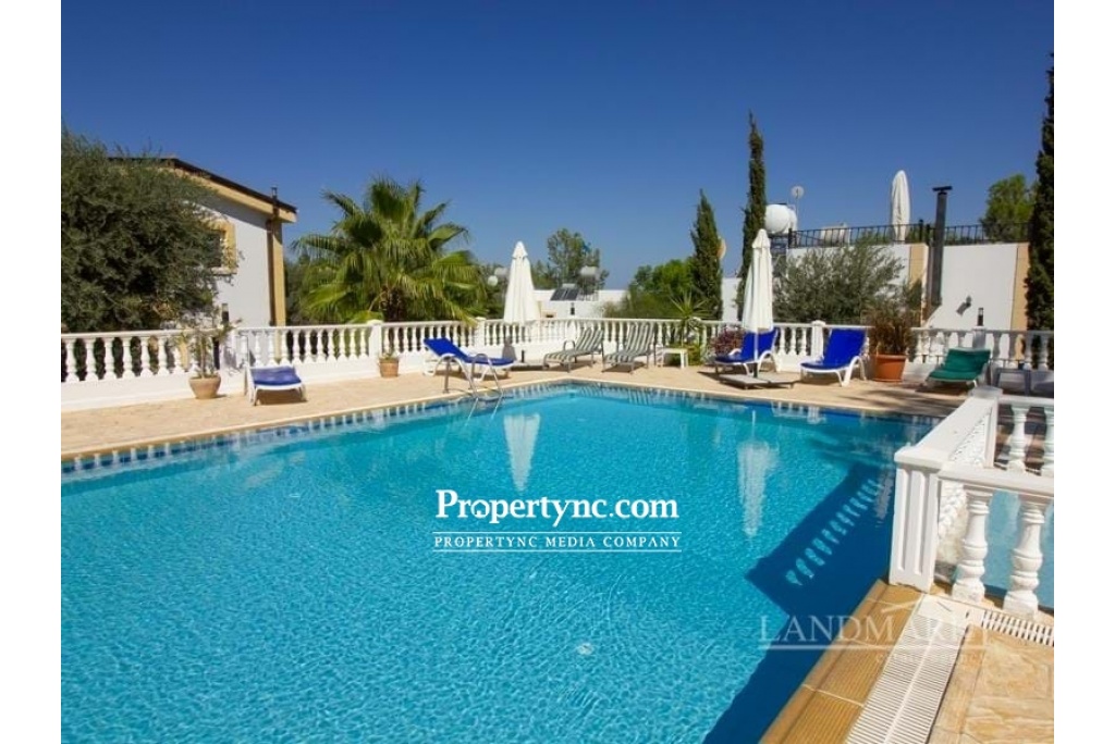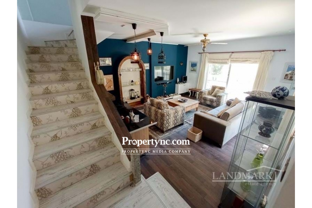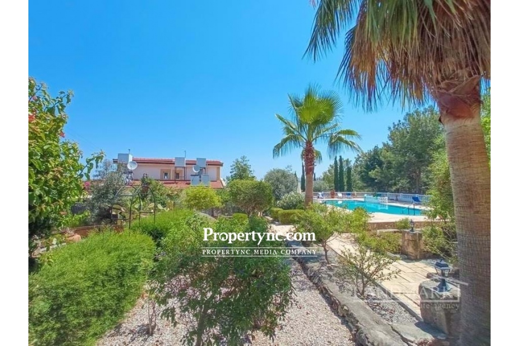 Situated on the outskirts of Ozankoy in Bellapais, this is tranquil site of semi-detached villas, next to a valley of pine trees and an unspoiled mountain range. This is a small complex of only 12 villas. Site has 15m x 6m communal pool, benefiting from its own private garden as well as landscaped communal gardens. There is also a residents committee set up to deal with the upkeep of the facilities, pool, and garden maintenance. The property will be sold fully furnished as seen, fully loaded, and ready to move into. Internally to the ground floor are an open plan lounge and kitchen area. Patio doors area leading out to its front terrace area which overlooks the pool. There is also one bedroom with access to a rear terrace and garden, great in the morning for coffee in the sun. Plus a family bathroom with a shower. To the first floor is solely the master bedroom with fitted wardrobes, dressing area and en-suite bathroom. Patio doors are leading to a terrace area overlooking the pool the green ravine to and to the Mediterranean Sea. A perfect holiday home and a great investment opportunity. 70m2 internal size Share of land title deed in owners name VAT paid Completed 2000 Exchange title 15m x 6m communal pool Fully furnished 2 beds master on solely on the top floor with en-suite, dressing room and large terrace overlooking the pool area and sea. 1 bedroom to the ground floor with access to the main bathroom and terrace Kitchen appliances Air conditioning x 2 White double glazed windows Fly screens White shutters to rear Rattan & beamed ceilings 2 tones of water CCTV camera system Private rear garden paved with pots Communal gardens that is all mature and a large green ravine. Maintenance £480 per year - REF: 740a