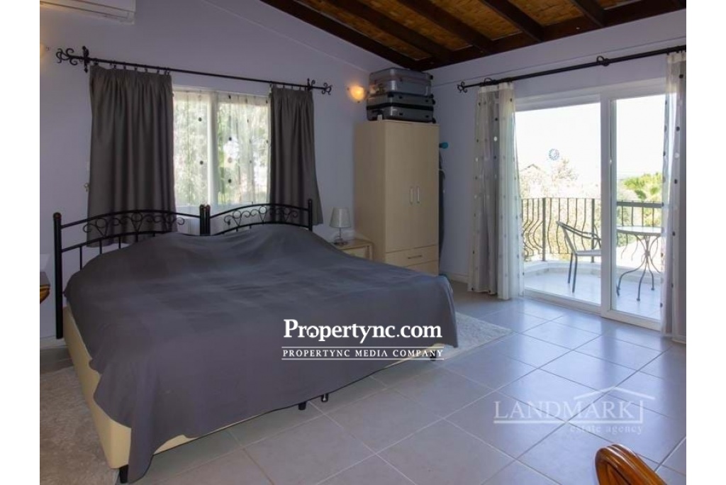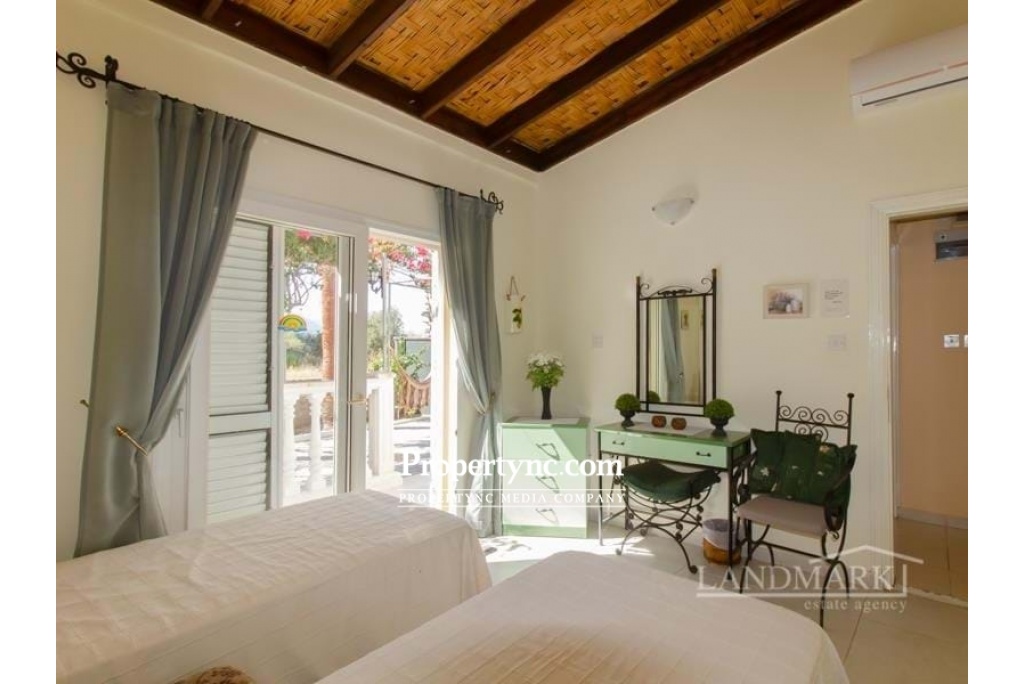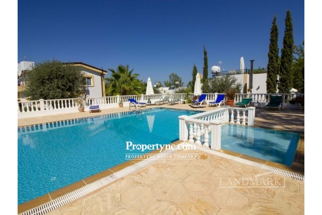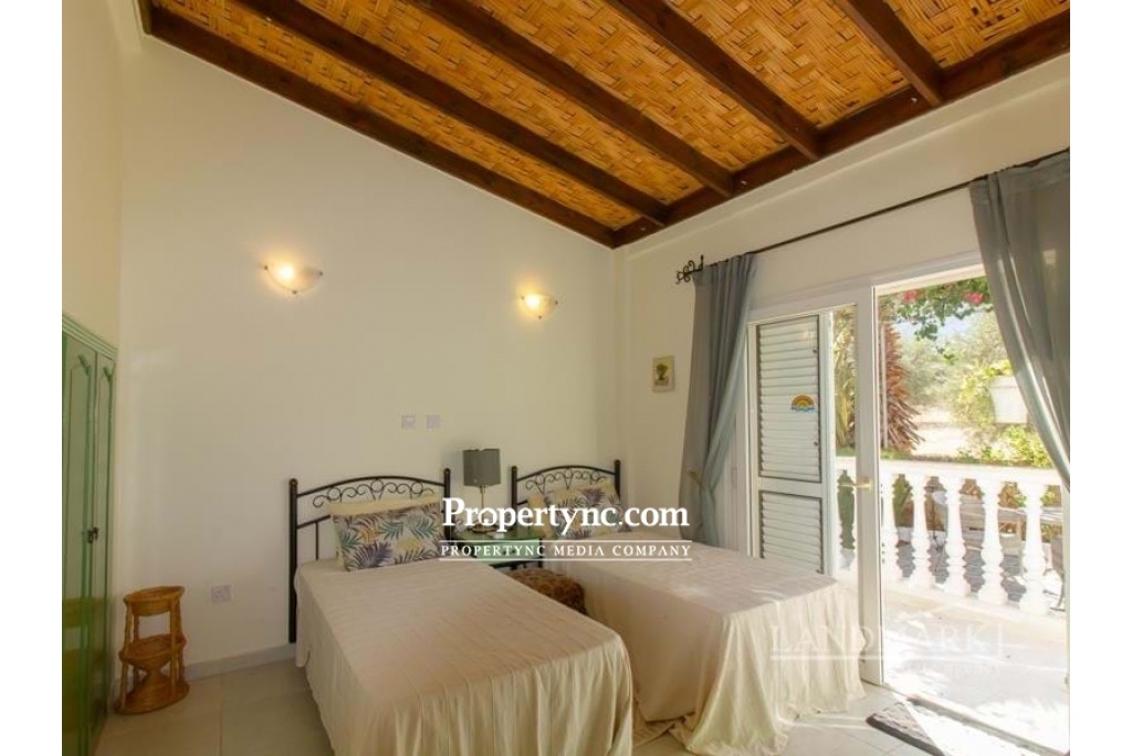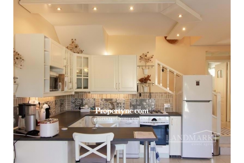 Situated on the outskirts of Ozankoy in Bellapais is this quiet, tranquil site of semi-detached villas, next to a valley of pine trees and an unspoiled mountain range. This is a small complex of only 12 villas and was built in the year 2000 by a well-known developer. There is a 15m x 6m communal pool with a sauna underneath, benefiting from its own private garden as well as landscaped communal gardens. There is also a residents committee set up to deal with the upkeep of the facilities, pool, and garden maintenance. The property will be sold fully furnished as seen, fully loaded, and ready to move into. Internally to the ground floor are an open plan lounge and kitchen area. Patio doors area leading out to its front terrace area which overlooks the pool. The kitchen is new and includes all the appliances. There is also one bedroom with access to a rear terrace and garden, great in the morning for coffee in the sun. Plus a family bathroom with a shower. To the first floor is solely the master bedroom with fitted wardrobes and en-suite bathroom. Patio doors are leading to a terrace area overlooking the pool the green ravine to and to the Mediterranean Sea. A perfect holiday home and a great investment opportunity. 70m2 internal size Share of land title deed in owners name VAT paid Completed 2000 Exchange title 15m x 6m communal pool Fully furnished 2 beds master on solely on the top floor with en suite and large terrace overlooking the pool area and to the sea. 1 bedroom to the ground floor with access to the main bathroom Kitchen appliances Air conditioning x 2 (beds) White double glazed windows Fly screens White shutters to rear Rattan & beamed ceilings 2 tonnes of water Private rear garden paved with pots Communal gardens that is all mature. And a large green ravine, you can just smell the pine trees Maintenance £480 per year - REF: 740