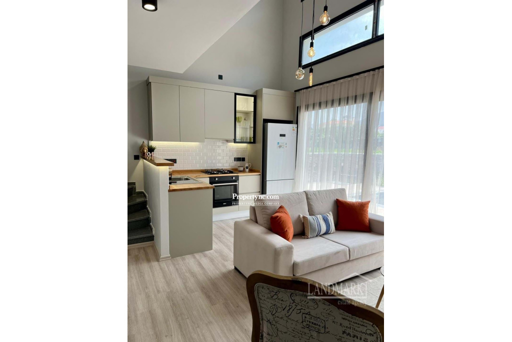Located in Karsiyaka are these completed apartments ready for sale. There will be 20 apartments in 5 blocks, comprising of 1-bedroom terrace apartments and 2-bedroom loft apartments all sharing a communal swimming pool. They are perfect for investment as you are within walking distance to the main road for public transport, walking distance to a market and restaurants. And many beaches are in the area the closest is 800m from the development. The 2-bedroom loft apartments are all on the ground floor and have 67m2 internal area and 90m2 garden. Comprising on the ground floor of an open-plan lounge, kitchen area, 1 bedroom and shower room. On the first floor is a gallery bedroom with ensuite bathroom. Option of a private swimming pool as an optional extra. This village offers several restaurants in the area, including a local fish restaurant down by the sea called Sirinyali. Sulars and Jessics are also in the vicinity and at the Karsiyaka square, you will find the Park café & and restaurant, the local butchers, barbers and a coffee shop. The green palace restaurant in the mountain and at the Karsiyaka beach you have Vasilia restaurant. You are just minutes away from Lapta village where you have the Lapta walkway, Sardunya beach and an array of other restaurants and facilities. 2+1 Loft apartments 67m2 Interior 90m2 garden Completion 2023 15m x 5m swimming pool 2 bedrooms 2 bathrooms En suite main bedroom Open plan kitchen Private swimming pool option Open car park Mountain view Air conditioning infrastructure in the lounge and bedrooms Laminate flooring in the lounge and bedrooms 3 tonnes down and 1 ton with the solar and electric boiler on the roof of all the apartment 160m walking path Green areas Private parking 50m to the supermarket 800m to the beach Mountain view 1-bed terrace apartment 50m2 internal size 35m2 roof terrace 1 bathroom Open-plan kitchen Sea view Mountain view Open car park Monthly Maintenance Fee £75 Extras Trafo fee TBC Furniture packages available - REF: 1941a