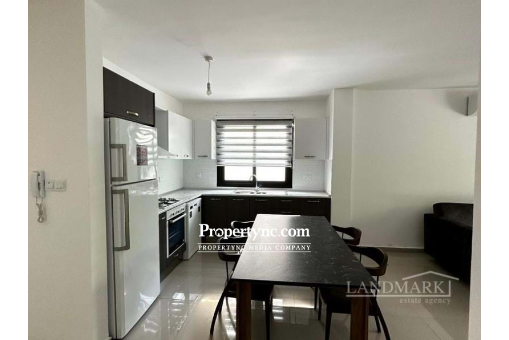 Upon entering this inviting ground floor flat, you're welcomed by a sense of modern elegance and comfort. The spacious open-plan kitchen and living room area impresses with its tasteful design and thoughtful layout. The kitchen showcases sleek black and white cabinets, creating a striking contrast with the pristine white marble backsplash. The open plan kitchen has good quality white goods and houses a stunning dark grey marble-patterned dining table, accented by dark wood and plush dark grey velvet seats. Beside the dining area is a cozy L-shaped couch, upholstered in the same luxurious dark grey velvet as the dining chairs. This comfortable seating invites relaxation and conversation, providing a perfect place to unwind. A sleek 43-inch TV is mounted on the wall opposite the couch, offering entertainment for quiet nights in or lively gatherings. The bedrooms are furnished with creamy soft coloured beds that exude calmness. Both bathrooms in the flat feature dark grey tiles and marble, adding modern elegance. Outside, the flat provides access to a communal pool, ideal for cooling off on hot days or enjoying a refreshing swim. - REF: 2142f