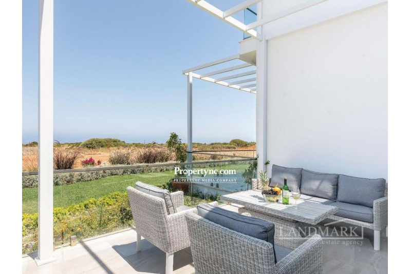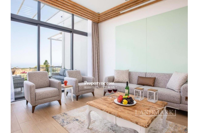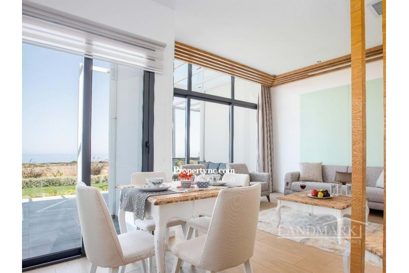 This 2-bedroom garden apartment with oversize terraces and generous private gardens is located in a quite picturesque area with direct sea views. The apartment is situated within a beautiful holiday complex in an area of outstanding natural beauty beside the sparkling Mediterranean sea. It is only 15 minutes drive from the world class Korineum Golf Course and a short drive to the bustling city of Kyrenia, with its famous antique harbour. A perfect site where residents are surrounded by gorgeous views of the sea, beach, parkland and the extensive Besparmak mountain range. A wide range of facilities of the complex includes: a beach club, a dedicated park with walking, cycle paths and picnic areas, several oasis swimming pools and a heated indoor pool, wellness and beauty spa, open air cinema, tennis, gym and sports facilities, restaurants and a café bar. This wonderful 2 bedroom apartment has been completed and is ready to move in. It offers a large living room with open plan kitchen, 2 large bedrooms and 2 bathrooms (one as ensuite to the master bedroom). This beautiful apartment has a super terrace and a large private garden. 90 m2 closed area Total 113.5 m2 Communal pool 2 bedrooms 1 Family bathroom Master bedroom with ensuite Fully fitted kitchen Kitchen appliances Landscaped private garden Landscaped communal gardens Parking space Uninterrupted sea and mountain views Top quality building materials and international brand fittings Larger dimensions than market comparisons including many units with oversize ceiling heights Substantial terraces and gardens High quality contemporary fittings and floor materials VRF central air conditioning and heating units (applies to the 2 bedroom) Majority green minimum concrete More than 100 varieties of plants Soft surface, low impact 3,5 km running track Non-slip pool surrounds - REF: 1942