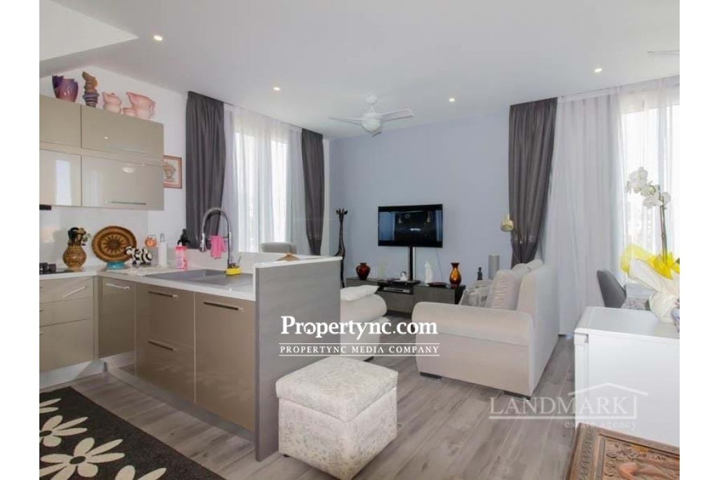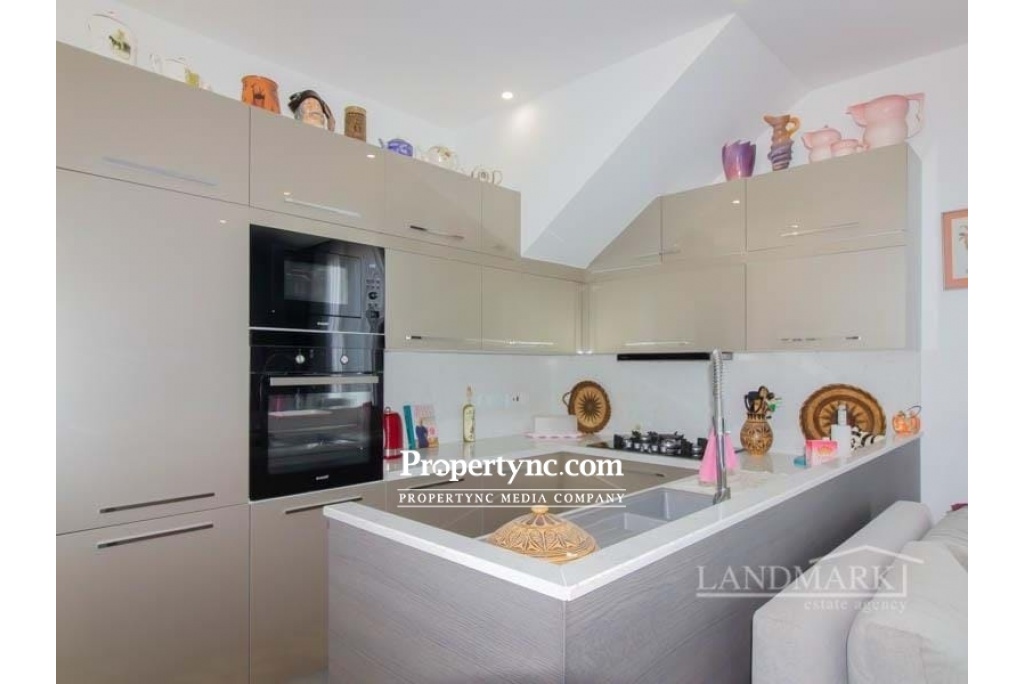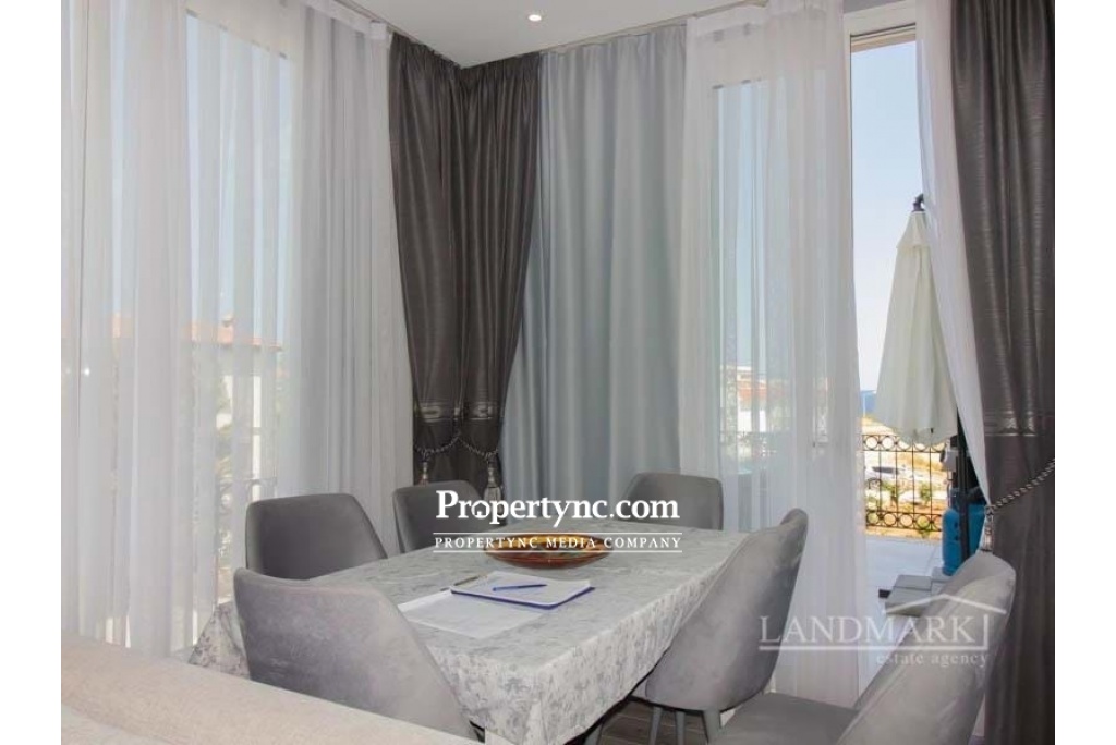 This amazing luxury penthouse is located in a newly built complex which is both an idyllic home in the sun and an excellent investment opportunity for you! The development has a stunning location with spectacular views of the Mediterranean Sea and mountains and just a short 100 m stroll from the beach! The penthouse is perfectly located on the seafront with sea and mountain views. It is furnished at a high level of quality. It also has a high standard of finishing, with quality floor tiles, heat and sound insulation, and underfloor heating throughout the entire apartment. It has a cosy lounge with an open-plan kitchen and a dining area with lovely sea views. From the dining area, there is access to the spacious balcony with garden furniture and BBQ. The kitchen is fully equipped with high-quality white goods. It has an integrated fridge freezer and dishwasher. Both bedrooms have built-in wardrobes. The master bedroom has an ensuite with a walk-in shower cabin and modern bathroom accessories. The family bathroom is spacious with modern accessories, a towel dryer, and a walk-in shower cabin. There is a staircase with a laundry room on the landing equipped with a washing machine and a dryer. From the landing, there is access to the roof terrace with garden furniture, a kitchenette, and storage. There is a wonderful view of the sea and mountains opening from the terrace. This luxurious development is designed in a resort style with all the amenities you expect from a luxury site. The sites amenities include a private beach, communal swimming pool, fitness center, sauna, jacuzzi, childrens playground, BBQ area, childrens football pitch, mini-golf, restaurant café & bar, and management site office, and full maintenance services. 82m² closed area Balcony 16m2 Roof terrace Exchange title deed Deed on the builders name, VAT payable Completed 2020 Furnished 100 meters to the sea 2 bedrooms with fitted wardrobes Master bedroom with en-suite Family shower room 3 air conditioners 4 ceiling fans Fully fitted kitchen Kitchen appliances Under floor heating in all rooms Heat and sound isolation Spectacular views of the Mediterranean Sea and Mountains Sites amenities include a private beach, communal swimming pool, on-site SPA and fitness centre, sauna, Jacuzzi, childrens playground, BBQ area, mini golf, restaurant café & bar, garden and green spaces Few minutes away from local amenities, golf course club, public bus, shops, supermarkets, pharmacy, restaurants and bars The site maintenance fee, £75 a month, is paid until 1st of January 2023 24 7 Maintenance Service - REF: 623d-1
