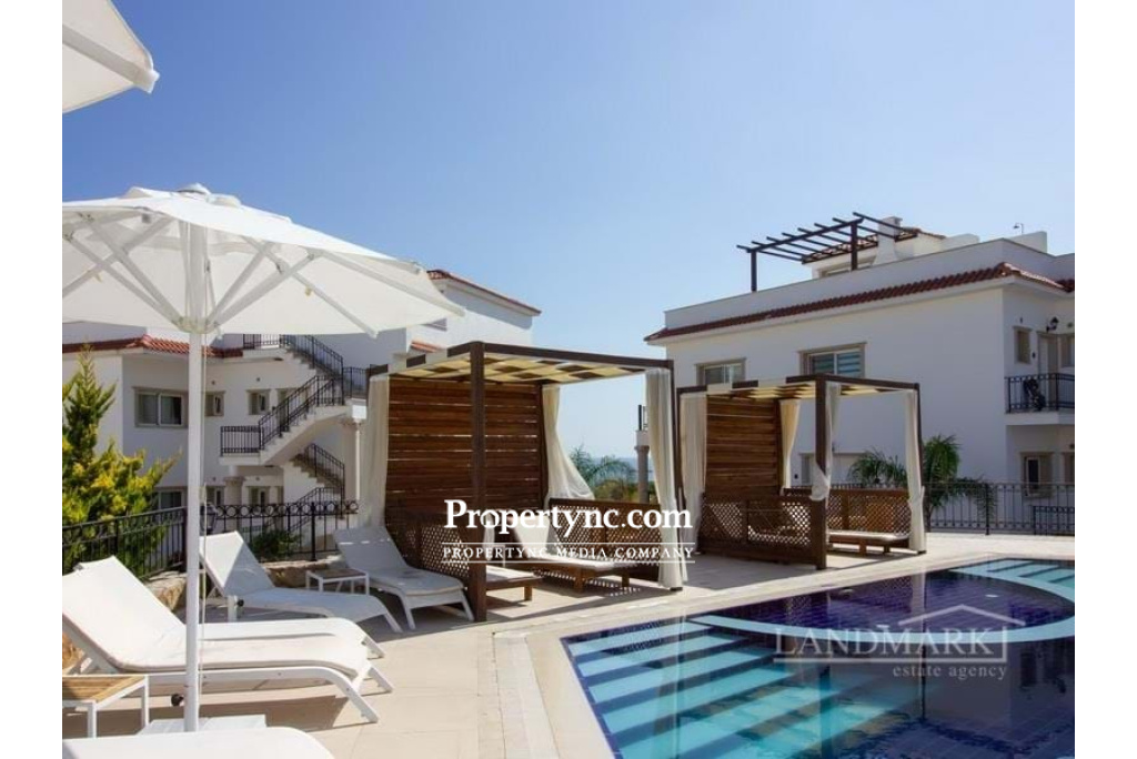 2-bedroom luxury seaside garden apartment + communal swimming pool + walking distance to the sea + within a complex