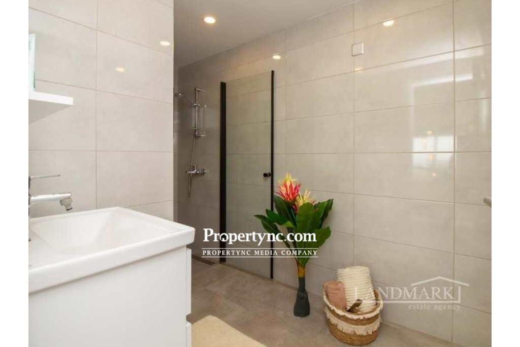 This stunning 2-bedroom penthouse is tucked away in a serene, picturesque area near the sea, offering breathtaking views of both the sea and mountains. Nestled within a newly constructed modern complex, the property features a beautifully landscaped garden, a communal swimming pool overlooking the sea, and a bar restaurant. The apartment is tastefully furnished with high-quality, modern furniture and appliances. It includes a spacious lounge room with an open plan kitchen, fully equipped and leading out to a terrace with garden furniture. The terrace opens up to a stunning view of the sea. The two-level apartment is connected by a wooden staircase with a glass balustrade. Leading upstairs, the master bedroom features an ensuite and a large frontal window boasting an incredible sea view. The lower level houses a second bedroom, elegantly furnished and complete with a large, mirrored floor-to-ceiling wardrobe. A modern walk-in shower cabin and stylish bathroom accessories adorn the family bathroom. On top of the building, a private roof terrace provides panoramic views of the sparkling Mediterranean Sea and mountains. It is equipped with sun lounges, perfect for sunbathing while soaking in the stunning vistas. This remarkable apartment is move-in ready. 75 m2 internal area 10 m2 terrace 25 m2 roof terrace Exchange title deed Completed 2022 Title deed in the builders name VAT to pay Communal swimming pool Fully furnished 2 bedrooms 1 family bathroom Master with en-suit and fitted wardrobe Fully fitted kitchen with wooden worktops Air conditioning x 3 Ceramic flooring Spotlights Irrigation system Generator Parking place Stone wall surround Communal landscaped garden Close to amenities Bar restaurant on site Walking distance to public beach and supermarket Sea and mountain views Maintenance fee is £60 per month - REF: 1345f-1