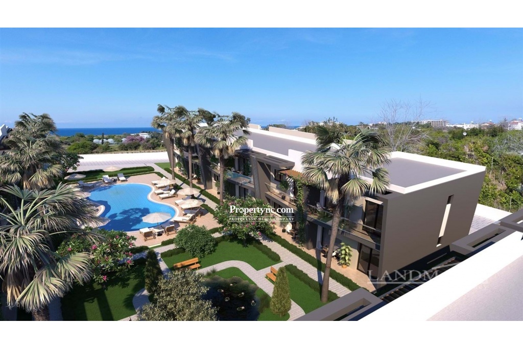 This stunning brand new project off plan is located in a fantastic location walking distance to all amenities. The project will comprise of 3 blocks with 42 apartments in total. 30 x 1 bedroom, 55m2 and 12 x 2 bedrooms 75m2 all designed around a specially designed pool. Each 2 bedroom apartment has an open plan lounge, kitchen, two bedrooms and one family bathroom. While they are being built the buyer can have a choice of tiles and kitchens. Each apartment is having a balcony overlooking the pool. Ground floor apartments have a garden and top floor apartments have a roof terrace. Close to some beautiful beaches, also walking distance to restaurants and the main road for buses and all amenities. Also for sale is a 400m2 office unit available. 3 blocks with 42 apartments 30 x 1 bedrooms 12 x 2 bedrooms Communal swimming pool Completion starting soon and will take 18mths for completion VAT payable 5% 2 bedroom 75m2 internal area 1 family bathroom Ceramic flooring Coving throughout property During build time choice of tiles are available During build time choice of kitchen are available Installation of TV , telephone Lighting around the complex Hydro foil water system Damp proof system at both roof and foundations Highest standard of materials and specifications Both mountain and sea view Blocked paved and road access Car parking area This is a respected building company and will give a 5 years building guarantee on all of their projects Payment plan 30% down £1600 trafo fee extra to pay 1 bedroom apartments & office available, please ask for details - REF: 1635a-1