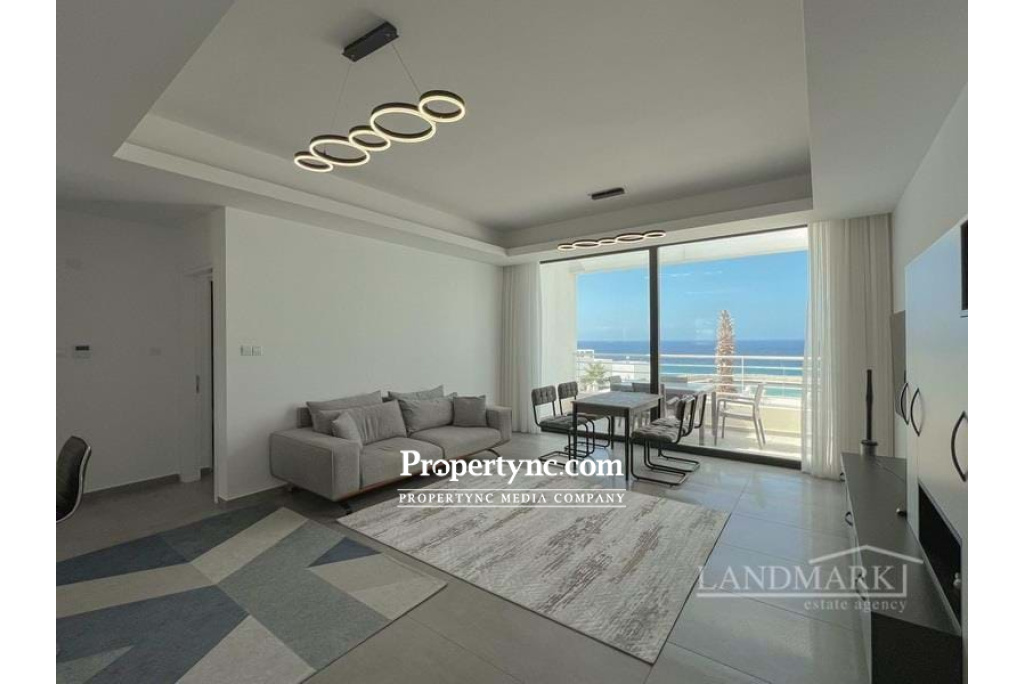 2-bedroom modern resale penthouse apartment in a sea front development + fully furnished + roof terrace + communal swimming pool + tennis court + beach in walking distance + future yachting marina