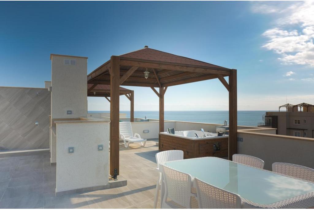 Our two bedroom penthouse apartments offer those looking for outside living the ultimate space and facilities. Jacuzzi, BBQ area, shower and pergola provide all you need to enjoy the long hot summers. The kitchen and living room open onto an additional terrace with double sliding patio doors. The apartments are finished to a high standard with the added benefit of additional turn-key packs available, including electrical items and furnishings.