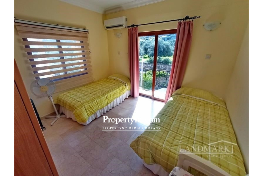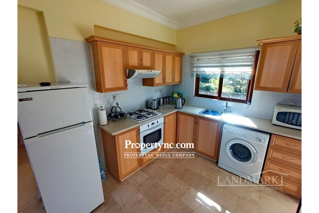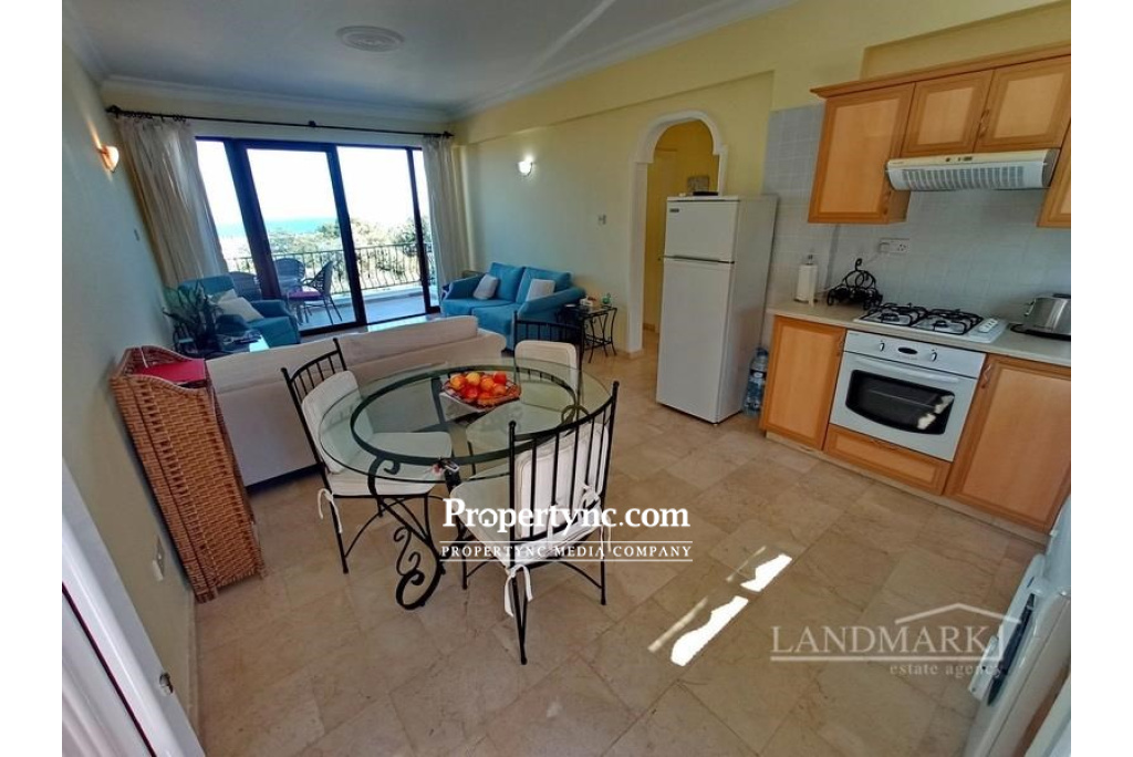 This 2-bedroom penthouse apartment is situated on a small complex with only 3 apartment blocks of altogether 12 apartments. The complex was built in 2004 by a well-known developer and must be viewed. It benefits from communal landscaped gardens and a swimming pool has been tastefully decorated and includes all furniture, fixtures and fittings. You enter the property to the kitchen which is open plan to the lounge dining area. There are the patio doors from the lounge leading to a lovely terrace with the views over the pretty garden which are very well maintained. There are two double bedrooms in the apartment. The master bedroom which is north facing has an en suite shower room and a terrace with spectacular views to the sea and the garden. The second bedroom is south facing with a balcony and has great mountain views. Both bedrooms have fitted wardrobes and air conditioning units. There is also a family bathroom with shower. The apartment is located in a quiet area with just a few minutes drive to other facilities and the Kyrenia harbour. 90m² internal size approx. Completed in 2004 Large communal swimming pool Exchange title deed Shared land title on owners name, VAT paid Fully furnished 2 bedrooms master en suite with shower 1 family bathroom with shower Fitted wardrobes Fully fitted kitchen with modern appliances Air conditioners x 3 Marble flooring Property maintenance £800 year - REF: 403o-1