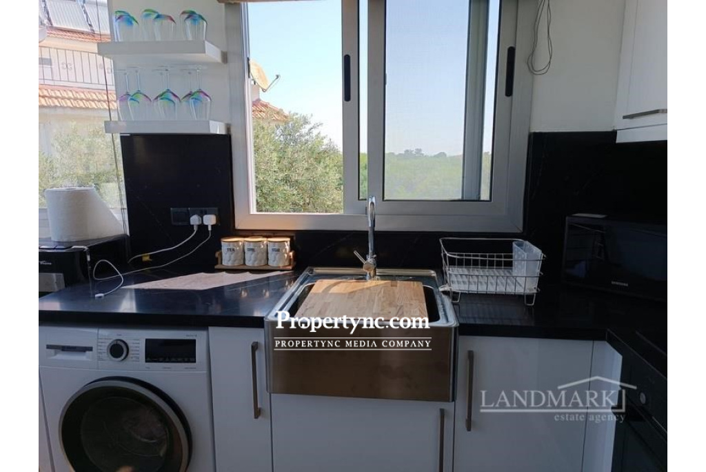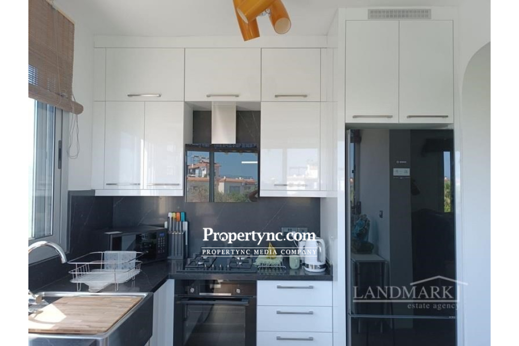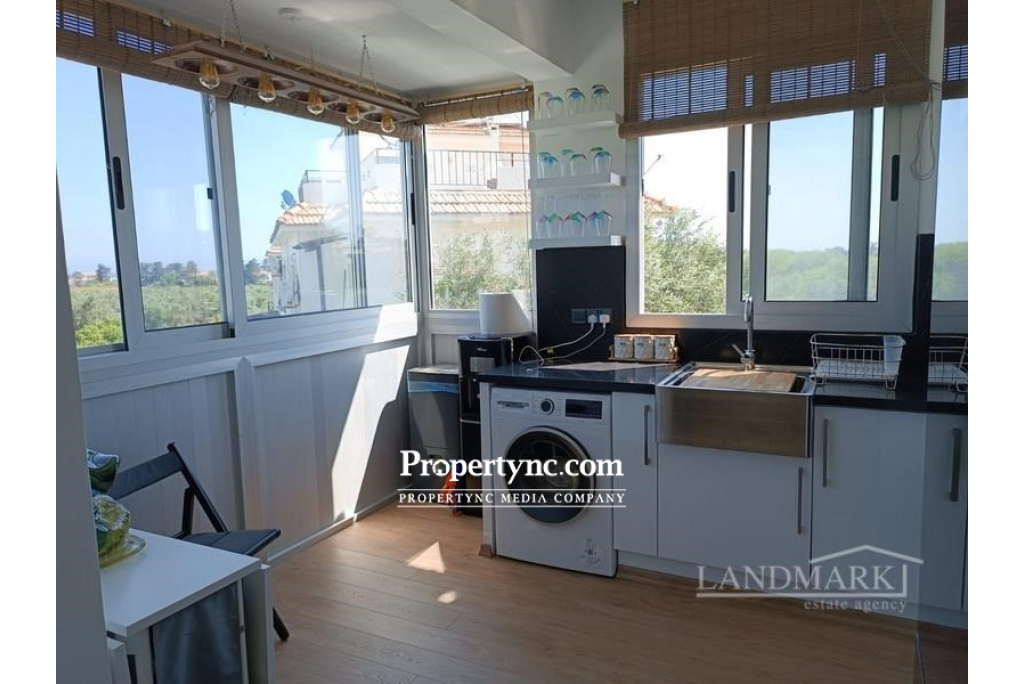 This lovely refurbished apartment is located in a great area of Lapta, with lush green gardens and a communal swimming pool. The 2-bedroom apartment has an internal size of 75m2, with a large private roof terrace. It has recently been modernised to a very high modern specification, with brand-new kitchen units featuring Black Bosch appliances, including a stainless steel IKEA butler sink. All new soft-closing wardrobes and drawers have been installed in the bedrooms and living area, along with new comfort slide grey windows with mosquito nets. The apartment features good quality honey oak wooden flooring throughout, and bamboo window blinds. There is a 24-btu inverter air conditioning unit that warms in winter and cools in summer. The kitchen has been extended and has sliding windows, making it a great place to sit and enjoy the view of the gardens. The living area is open plan, with a lovely arch leading to the kitchen area. There is one single bedroom and one double bedroom, which share a shower room. On the roof terrace, there is an enclosed conservatory with a brand-new kitchen including an IKEA sink and large patio doors leading to an open area where you can stargaze at night or take advantage of the all-round amazing views of the sea, mountains, and beautiful gardens and pool. The project is close to a beautiful bay called "Sarduna Beach," where you can sunbathe and have lunch with family and friends while enjoying the fantastic view of the Mediterranean and listening to live music. Sulars and Jessics bars are also in the vicinity, as is the Silver Rocks Restaurant, and you are only a few minutes' drive to the Lapta strip, where you have an array of other restaurants and beaches to enjoy. The bus stop is just on your doorstep, with a minute's walk. The bus runs every 20 minutes into Girne Kyrenia. You are also close to all other amenities, such as chemists, supermarkets, banks, and a whole selection of shops, which runs into the neighbouring village of Alsancak. The area has become a very popular residential area and has a mix of locals and expat communities. The apartment will be sold fully furnished; all you need is your suitcase! 75m2 internal area 75m2 roof terrace Land title deed in the previous owners name Completion approx. 2012 Communal swimming pool Furnished 2 bedrooms Family shower room Lounge with views Kitchen with appliances 75m2 private roof terrace with fitted kitchen High quality fitted kitchen & wardrobes & sanitary ware shower & bathrooms 24 inverter unit to cool and warm all the rooms Good quality new honey oak wooden floors throughout Bamboo window blinds throughout Site fees £45 per month or can be paid yearly. - REF: 785w