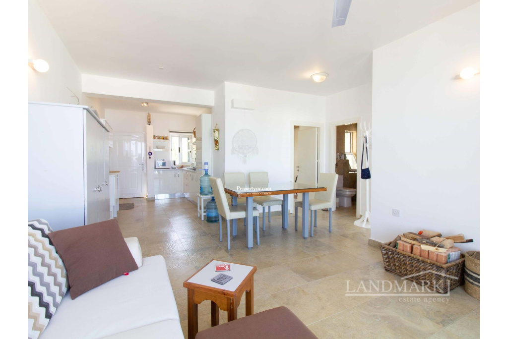 This is a wonderful well-presented 2-bedroom apartment situated in a well-maintained complex, which has a large shaped communal pool and childrens playground. A new restaurant has also just opened also on the site which is a great benefit. The apartment is in perfect condition and is very well looked after and maintained by the current owners. Initially there is a lounge with a log burner and comfortable furniture, open plan fully equipped fitted kitchen, two bedrooms, one of them is used as a study, and a stylish family bathroom with natural stone and wood decorative elements. There is a wonderful view opening from the windows of the bedroom and the living room, which have access to the balcony through patio doors. On the balcony there is a spiral staircase leading to the large roof terrace with a pergola and sunbeds. From the roof terrace you can enjoy the most amazing view either of the sparkling Mediterranean Sea and the picturesque mountains. Award-winning architects were brought in to build this project. Set close to the waters edge and set within nature with beautifully landscaped gardens and leisure walking paths that run throughout this holiday complex. 62m² internal size VAT to pay Title deeds ready to deliver Completed 2013 Communal pool Furnished 2 bedrooms 1 family bathroom recently renovated (2022) Fully fitted kitchen Kitchen Appliances almost new and of good quality Air conditioner and fans Fly screens throughout Log burner Roof terrace Pergola (40 m²) Garden furniture Gym Childrens playground New restaurant Bar drinks area Maintenance fee £950 year (subject to change) Views of the Mediterranean Sea and the mountains Walking distance to the beach - REF: 436s