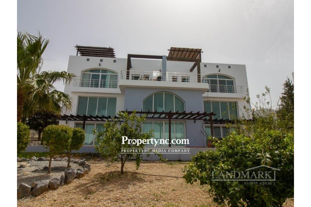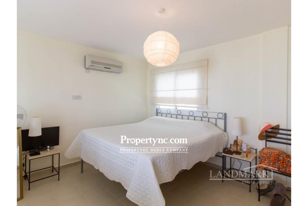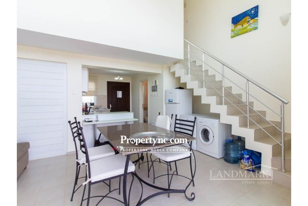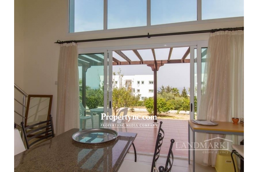 This 2 bedroom holiday apartment is situated within a well maintained and well organized complex surrounded by pure nature. The holiday complex consists of 145 quality apartments, communal swimming pools, gym, a restaurant, childs playground. It is strategically placed to maximize the Mediterranean Sea views to the North and Mountain views to the South. The project is situated on the lush foothills of the Five Finger Mountain Range in the Esentepe region. The apartment occupies two levels. On the first level, there is a lounge, an open plan kitchen, a bedroom with fitted wardrobes, and a guest WC. The lounge has an access to a large terrace with a view to the garden and the sea. The staircase from the lounge leads you to the second level with a bedroom and a bathroom. The bedroom is with fitted wardrobe and a big window overlooking the garden and the sea view. On this site, you can find a peaceful hideaway from hustle and bustle of daily life and enjoy your holiday by the sea surrounded by nature. 75m2 internal area 20m2 terrace area Exchange title deed VAT to pay Communal swimming pool Fully furnished 2 bedrooms 1 en suite 1 shower room Fully fitted kitchen Kitchen appliances Onsite restaurant Playpark Children's play area Gym Maintenance fee £106 per month - REF: 176r-1