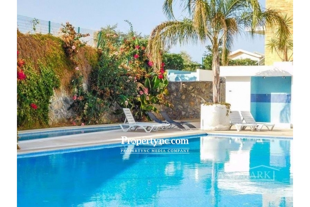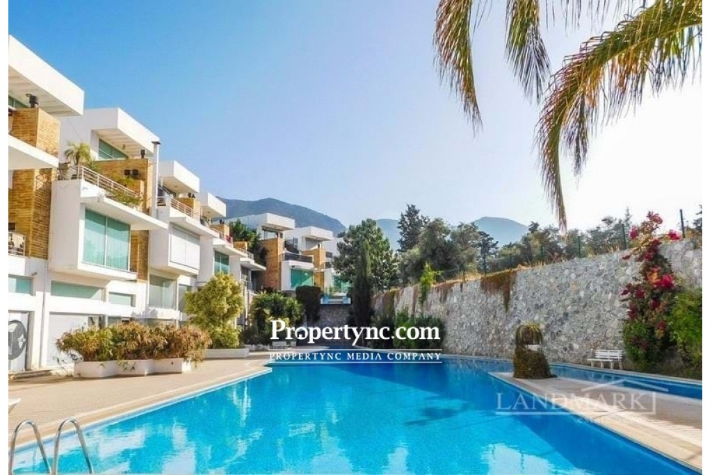 2 bedroom resale duplex apartment + graduated lake swimming pool + partly furnished + white goods + air conditioning + Title deed in the owner's name VAT paid