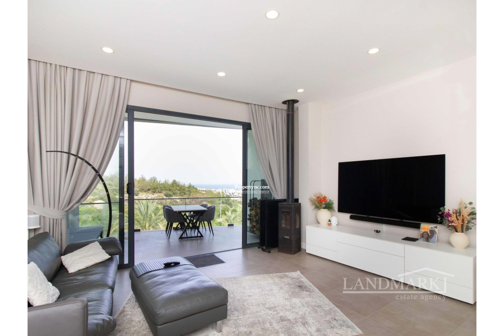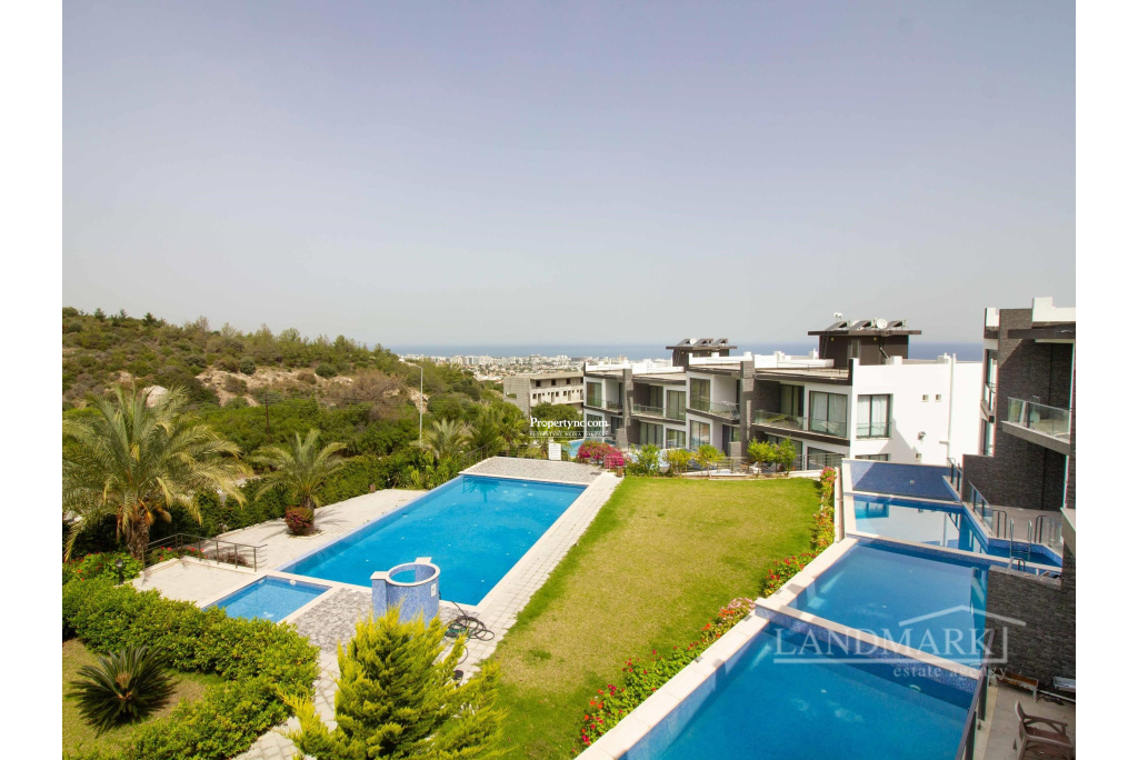 Located in Esentepe on the mountainside is this lovely development of 24 duplex semi-detached townhouses. Having panoramic sea and mountain views from its roof terrace and the properties have a contemporary design. Comprising internally are two bedrooms located on the ground floor with access out to the terrace area sharing a family shower room. There is a storage area where the washing machine is. On the first floor, you have the living area to maximise the gorgeous views. Open plan living room and kitchen all fully fitted with access to a terrace having coastal, sea & mountain views. There is also another shower room on this level. You have access to a roof terrace with fabulous 360 degree views of the mountains the coast line and Mediterranean and a BBQ for Alfresco dining. You also have your own private garden. On-site there is a communal swimming pool and garden area which is very well maintained. It will be sold fully furnished, has ceramic floor tiles, double glazed windows, and air conditioning in all rooms. The development is approximately 1.5miles from the beach and the 18 hole golf course where you can also dine and is around 14 miles to Kyrenia city center where the old horse shoe-shaped harbour is and all the excellent restaurants and shops. 94m2 internal area 135m2 including terraces 350m2 approx land size Exchange title deed Completed 2015 20m x 10m communal swimming pool 2 bedrooms on the ground floor with fitted wardrobes 2 shower room with towel heater & electric unit Fully fitted kitchen Kitchen appliances Inverter air conditioning x 3 Ceramic flooring Private garden Maintenance - £65 per month - REF: 1828a
