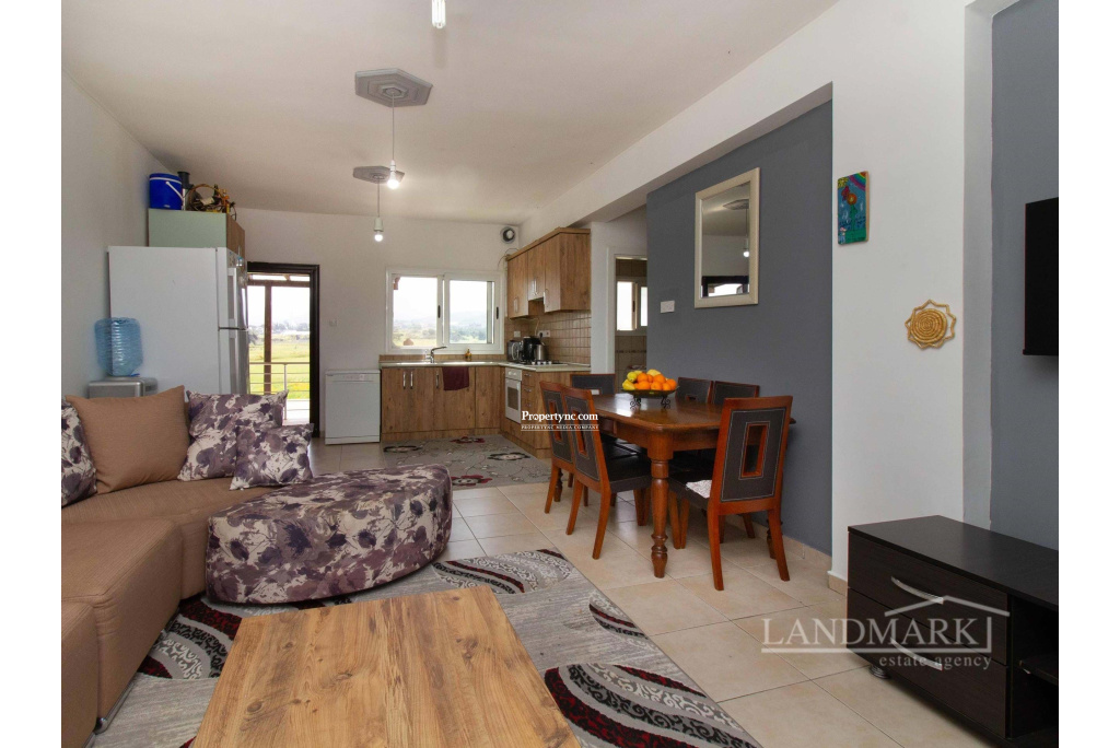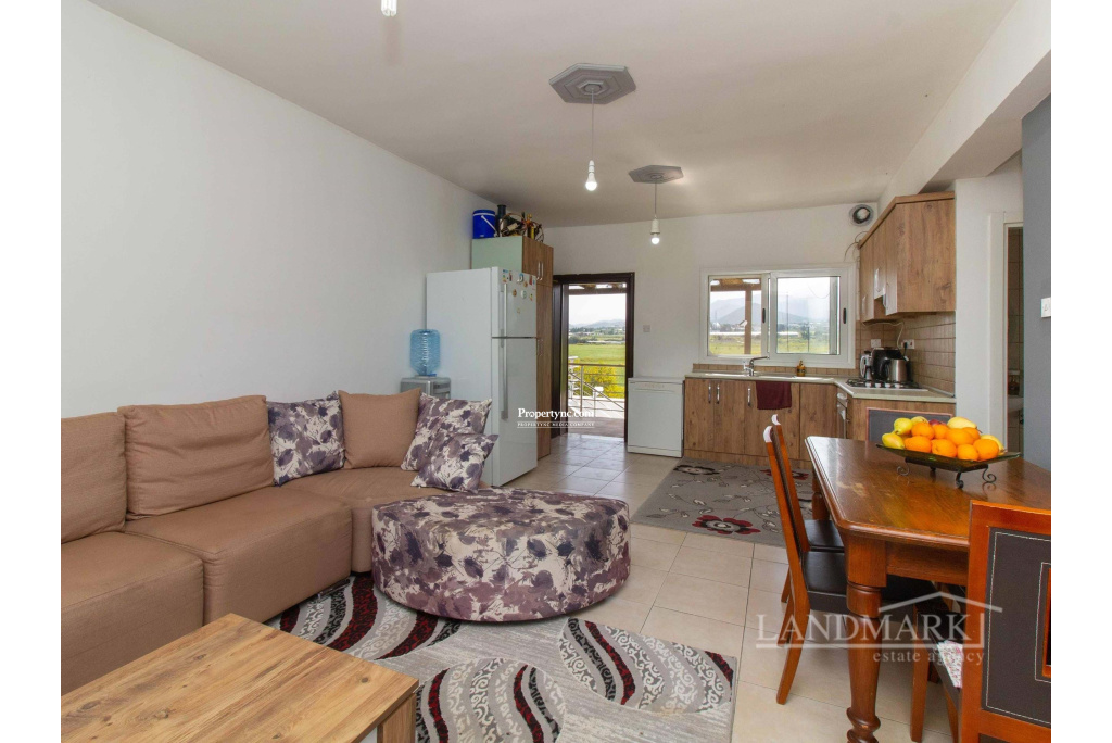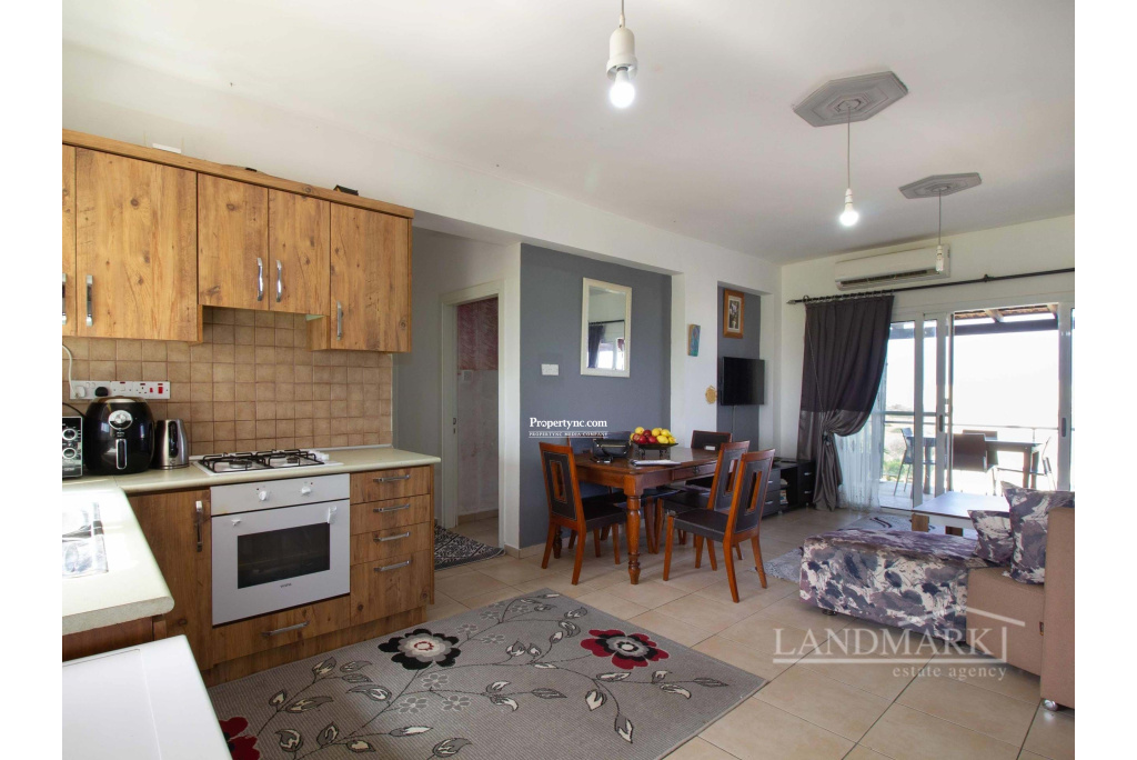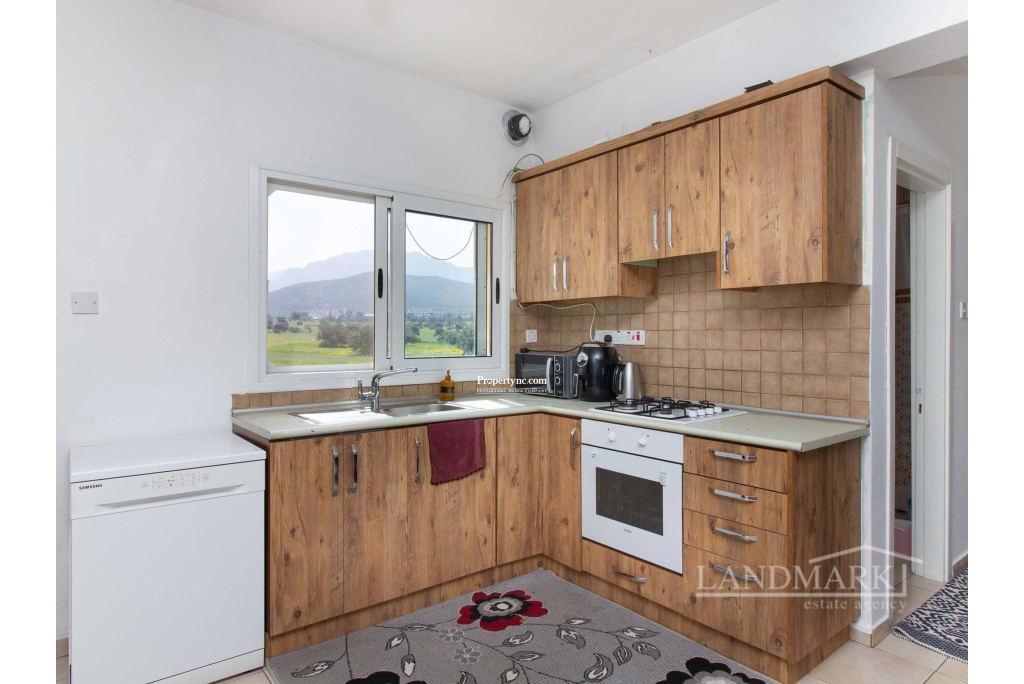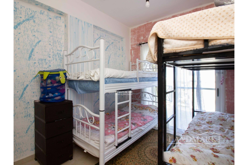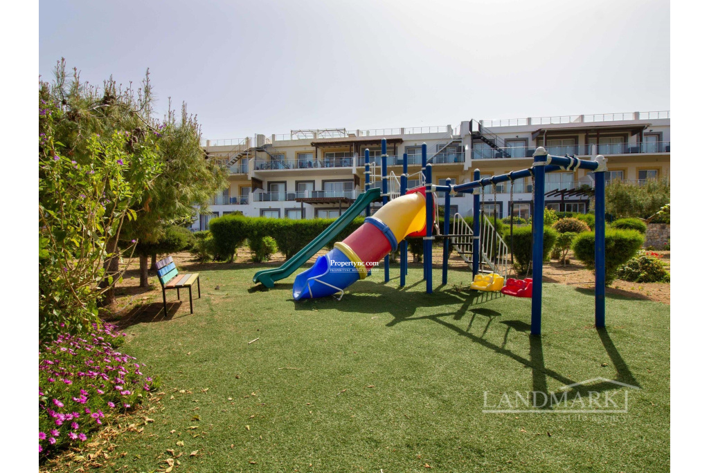 Welcome to this stunning two-bedroom flat nestled in a scenic location, with a private roof terrace offering unmatched views of the sea and majestic mountains. Situated within a secure gated community, the residence enjoys exclusive access to three expansive communal swimming pools, including a kids' pool, ensuring sufficient entertaining opportunities for residents. Ascending to the third floor, you're greeted by a seamless blend of sophistication and functionality. The entrance leads you into an inviting open-plan space, where a modern kitchen adorned with wood cabinets and cream countertops seamlessly merges with a tastefully appointed living area. Moving to the living room a cozy brown couch serves as the focal point, as well as the dining area. Through the large windows, natural light floods the room while offering captivating views of the extensive site with its swimming pools and the sea beyond. Continuing into the house, on the left, a convenient guest bathroom awaits. A bedroom on the right, furnished with cozy bunk beds and adorned with floor-to-ceiling wardrobes, providing ample storage space for personal belongings. At the end of the corridor there is the en-suite bedroom exuding both comfort and luxury. The spaciousness of the bedroom is matched only by the indulgent bathroom, with a generously sized shower. Floor-to-ceiling wardrobes line the walls, while a large window offers enchanting views of the surroundings. Moving up the stairs, you're greeted by the crowning jewel of this house a large roof terrace, designed for outdoor entertaining and relaxation. Complete with a barbecue area, all while enjoying uninterrupted panoramic views that stretch as far as the eye can see. 90m² internal area 190m² including terraces Exchange title deed Completed 2006 VAT to be paid by the owner 3 shared swimming pools 1 en suite with showers 1 guest bathroom Master and the other bedroom with floor to ceiling wardrobes Fully fitted kitchen Kitchen appliances Air conditioning x 1 Kids playground Gym Café Sea and mountain views Walking distance to the sea Water well Irrigation system 5 tonnes of water storage Generator for the common use spaces Open car parking spaces Walls surround with automatic entrance gate Mature established garden - REF: 271p