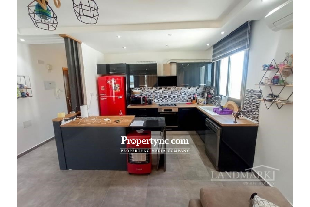 Have a look at this modern two-bedroom penthouse apartment located in the village of Alsancak, in a very convenient location, near to the sea and close to all the main infrastructure amenities, such as shops, pharmacies, bars, restaurants and 5-star hotels. This cosy apartment has an open plan kitchen combined with a fully fitted kitchen and access to the terrace through the patio door with sea and mountain views. The 2 bedrooms share a family bathroom. There is also access to the private roof terrace where you can enjoy sunrises with a cup of coffee in the morning and amazing sunsets with a glass of wine in the evening. 90m2 internal size 30m2 roof terrace Exchange title deed Title deed on the builders name Vat to pay Completed in 2019 Fully furnished 2 bedrooms Family bathroom Fully fitted kitchen Dark-grey double glazed windows Ceramic flooring 5 tons water tank On street parking place Sea and mountains views - REF: 1993