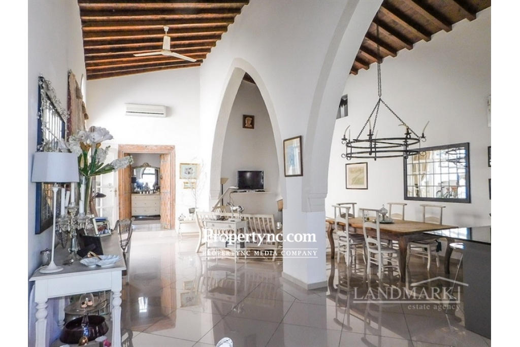 This lovingly restored traditional village house is truly unique and stunning! Located in the heart of Ozanköy village dating back to 1881 and was previously the local bakery. The current owner is an internal architect herself and started this ambitious restoration in 2008. She restored this historic building in a perfect way and very tasteful, striking a balance between modern comfort facilities and traditional ways of life. Ozankoy is situated 3 miles east of Kyrenia and known as one of the most spectacular villages in Northern Cyprus. This peaceful village has preserved the natural environment and the friendly and welcoming locals make it a great place to visit. Other sights include a medieval church and a mosque. There are also cafes, bars, and restaurants, and a day spent here is a day you will truly remember and enjoy. Once you enter this charming property, you will be in the large lounge with open plan kitchen & dining area. The modern designed kitchen has fitted units including the white goods and granite worktops. The lounge has an open fireplace with the flue reaching up to the ceiling, has two Cyprus style stone arches and high wooden beamed ceilings. After the lounge area you have a 1 bedroom with en-suite bathroom. Above the bathroom is a mezzanine area. This bedroom has a beautiful old original Cyprus stone arch. There is access from both the bedroom and lounge to a cosy courtyard area with natural stones. From here is the access to the second bedroom with its own en-suite bathroom. Perfect, for your visiting guests. From the courtyard, stairs take you up to the roof terrace areas with great views over the village the mountains and the sea. 150m2 internal area approx. 1725 foot ( appx.160m2) plot size Exchange title deed Building dating 1881 Renovated 2008 Title deed in the owners name VAT paid Furniture negotiable 2 bedrooms 1 internal and one external 2 en suite bathrooms Above the bathroom is a Mezzanine area Fully fitted kitchen Kitchen appliances Granite worktops Open fireplace Air conditioning x 2 Ceiling fans Porcelain flooring Wooden beamed ceilings Traditional arches one is original 10 tonnes of water storage Roof terrace on two levels, village, mountain and sea views - REF: 1639